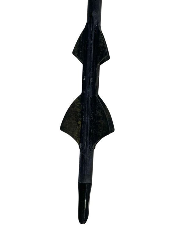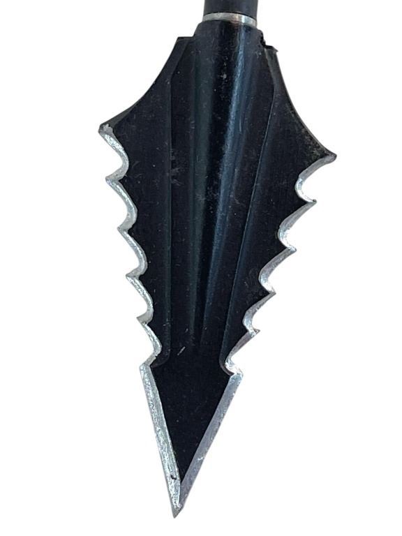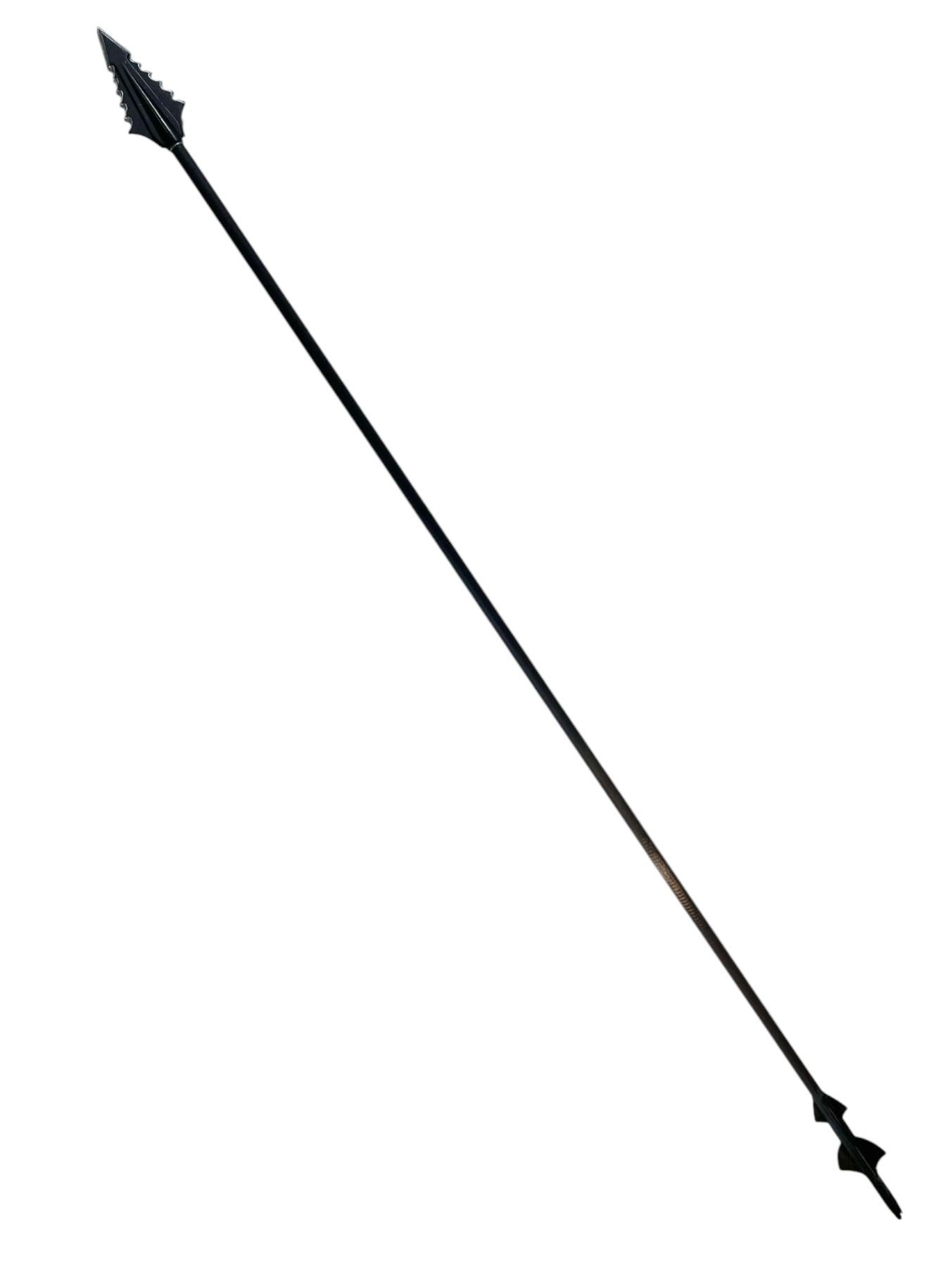 This item is a hand fletched, hand cut Carbon fiber arrow with aluminum threaded insert for the specially made hand painted hero rubber broadhead to attach, the broadhead having a threaded piece in the center used by "Prometheus", played by Josh Segarra from the production of the superhero television series 'Arrow' (2012-2020), follows billionaire playboy Oliver Queen (Stephen Amell), who claimed to have spent five years shipwrecked on Lian Yu, a mysterious island in the North China Sea, before returning home to Starling City (later renamed "Star City") to fight crime and corruption as a secret vigilante whose weapon of choice is a bow and arrow.