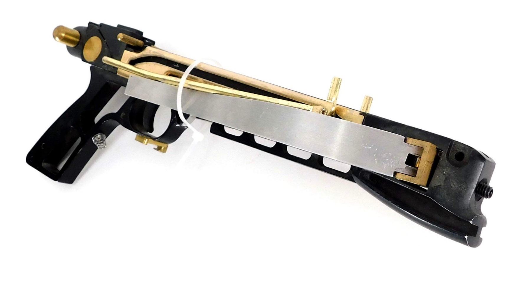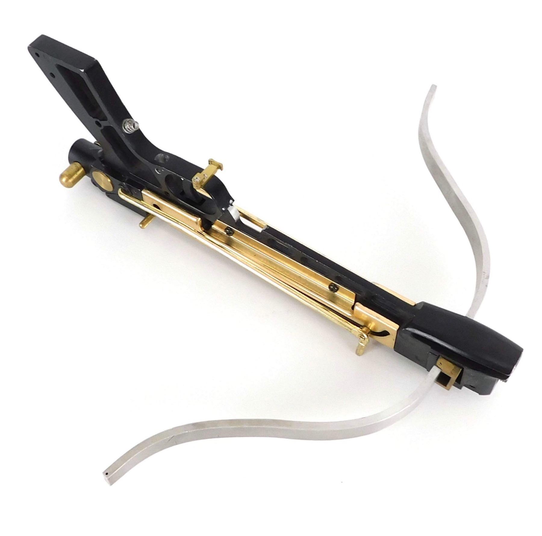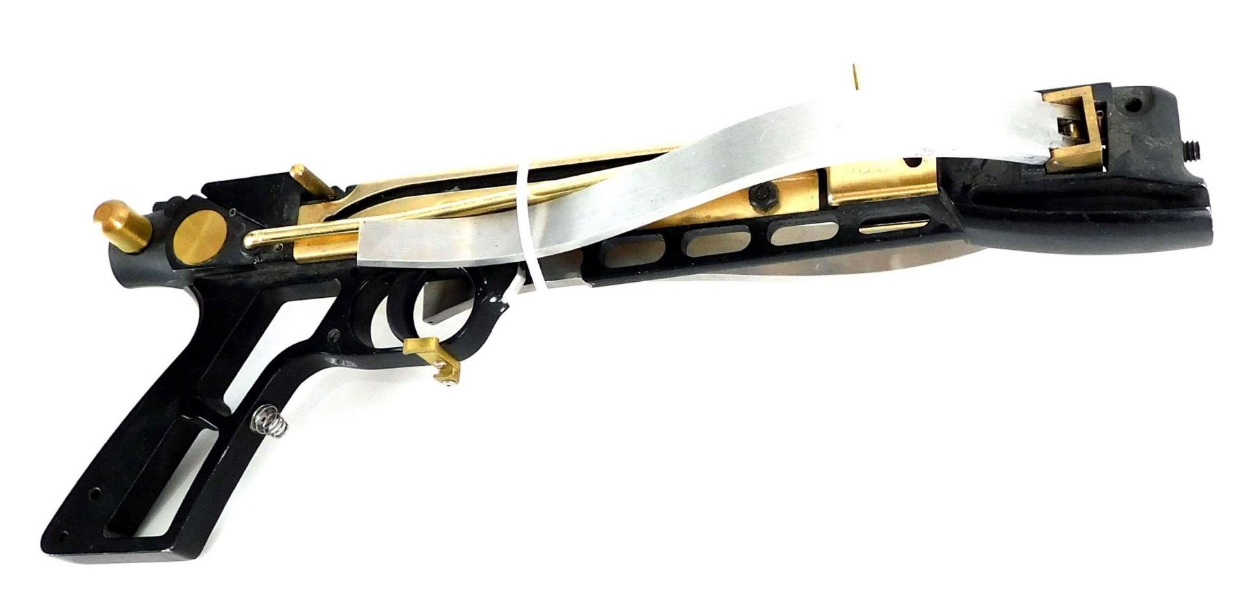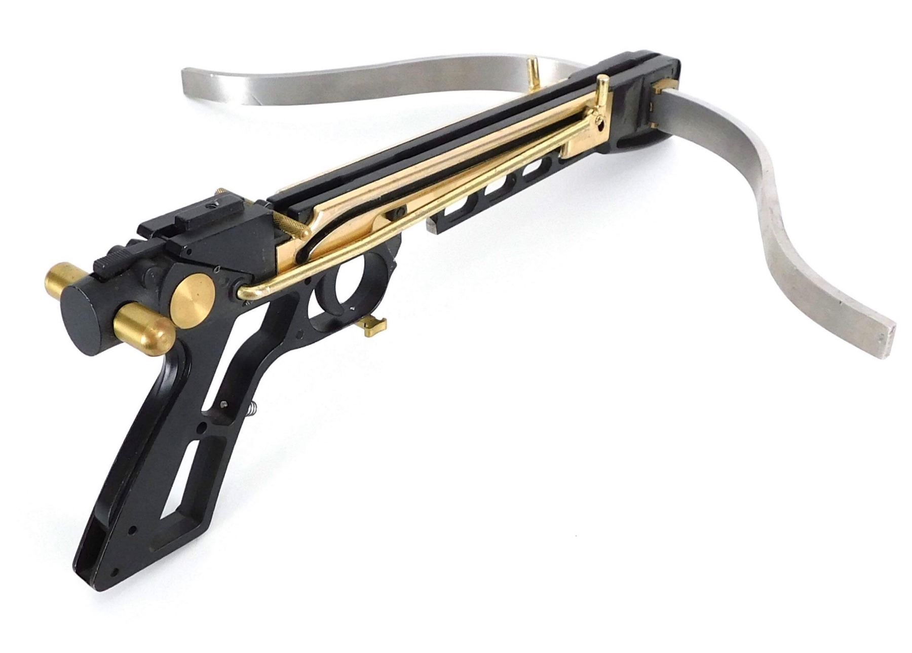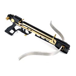 Production made prototype crossbow used by the "Huntress", played by Jessica De Gouw in the production of Arrow TV Series (2012–), the superhero television series where, spoiled billionaire playboy Oliver Queen is missing and presumed dead when his yacht is lost at sea. He returns five years later a changed man, determined to clean up the city as a hooded vigilante armed with a bow.