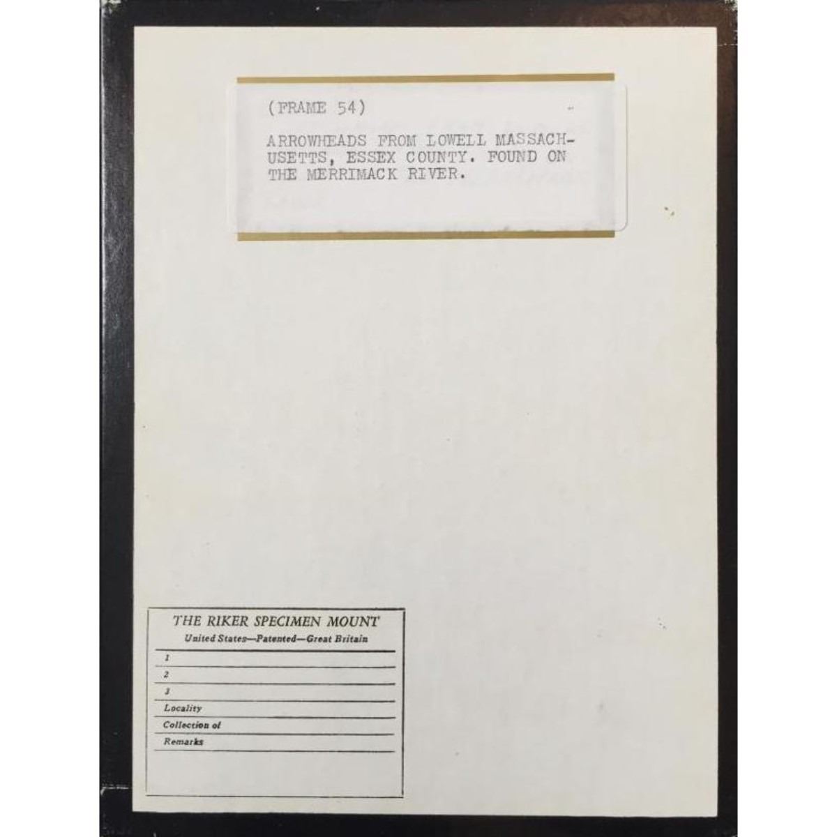 Arrowhead collection, Native American points, 9 total. Found in Lowell Massachusetts, Essex County, on the Merrimack river. Largest point 3"L Comes with 6 1/2" X 8 1/2" museum case.