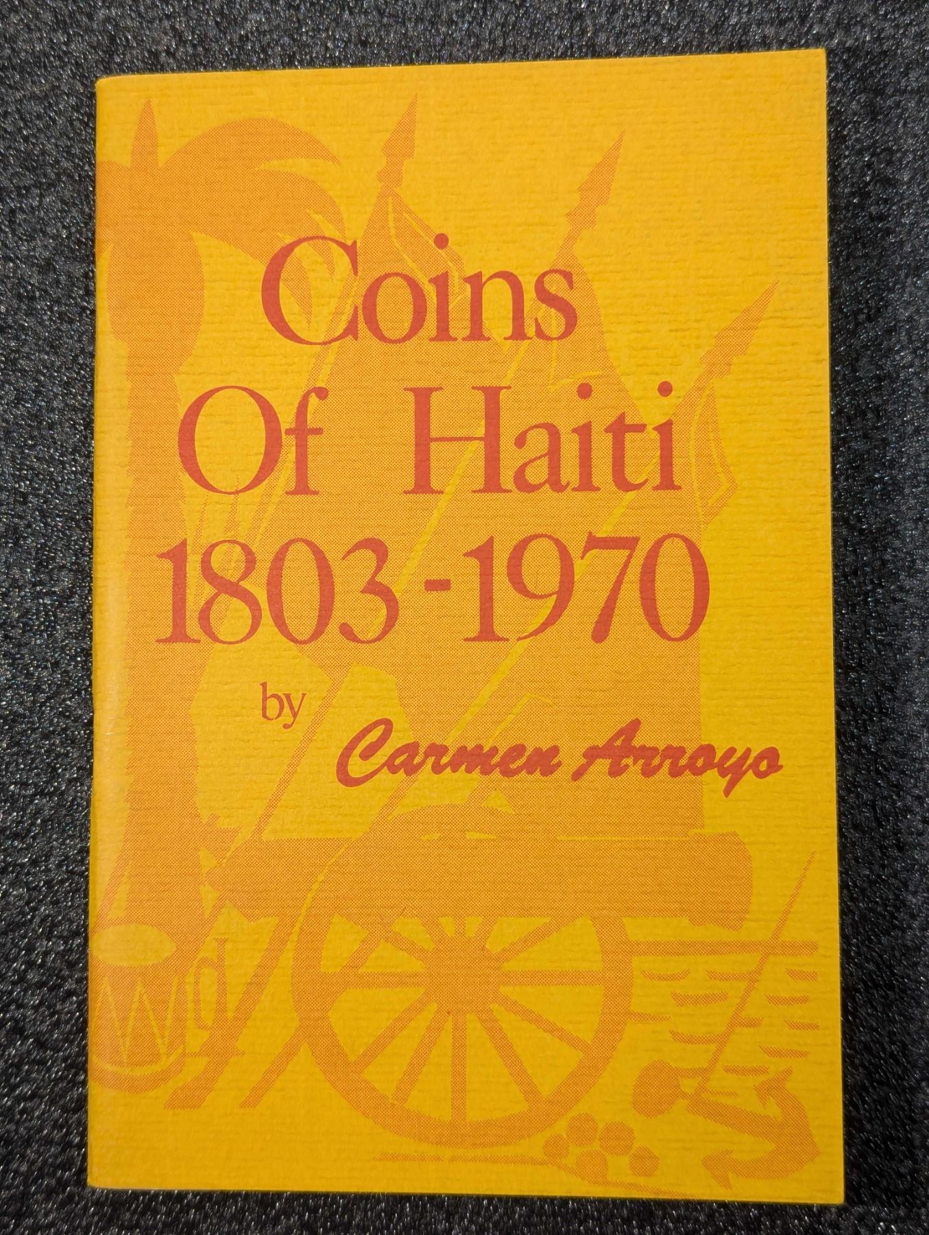 Arroyo, Carmen & Dale A. Seppa [editor]. COINS OF HAITI 1803 - 1970. Almanzar's Coins of the World, San Antonio. 1970. 12mo. 52, (4) pages. original pictorial card covers. Appendices. B&w photos throughout. English and Spanish text. Fine. This book is a comprehensive price guide to the coinage of Haiti from 1803 through 1970. Lot weight: 0 lbs 3oz. Subject(s): Haitian Coinage.