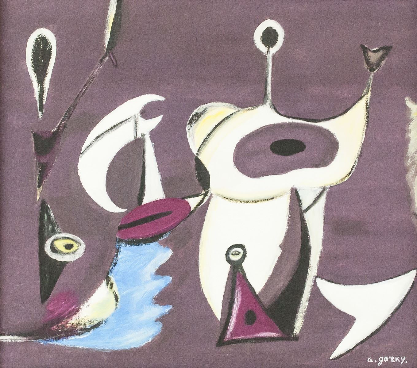 Oil on canvas, framed. Featuring a surrealist composition. Signed a. gorky. on the lower right corner. Attributed to Arshile Gorky (1904-1948, American). 41 x 47 cm (16 x 18.5 inches). Framed size: 48 x 53 cm (19 x 21 inches). PROVENANCE: This lot carries limited provenance from a Southern Ontario estate
