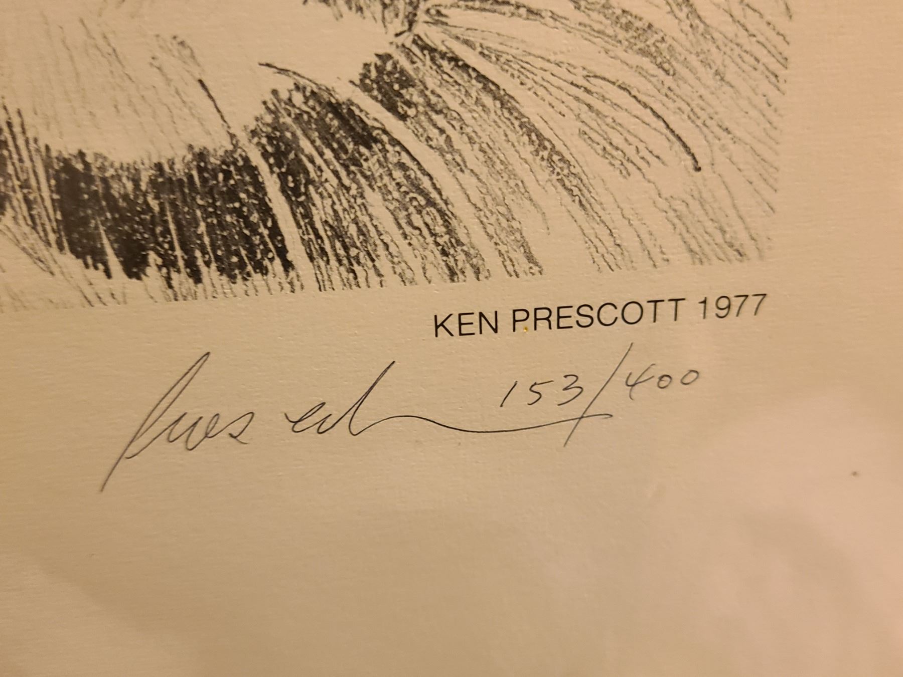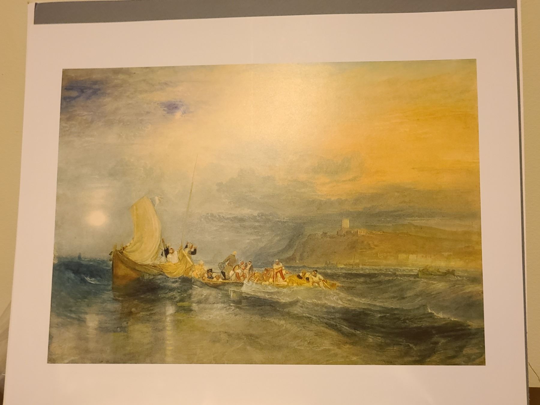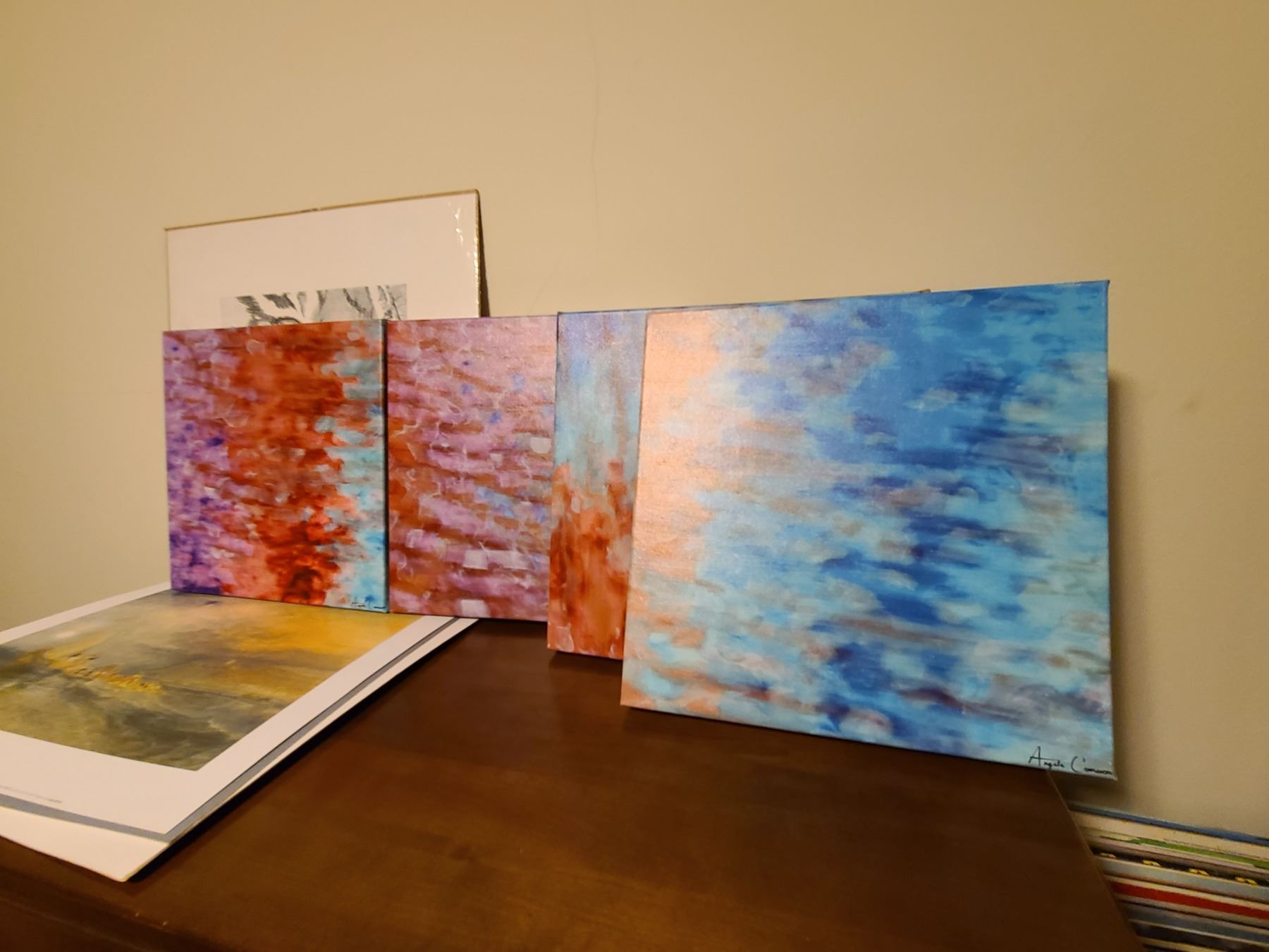Four art pieces by Angela Cameron 14x14, tiger print by Ken Prescott and Turner print. Pickup cat. A at 9 am.