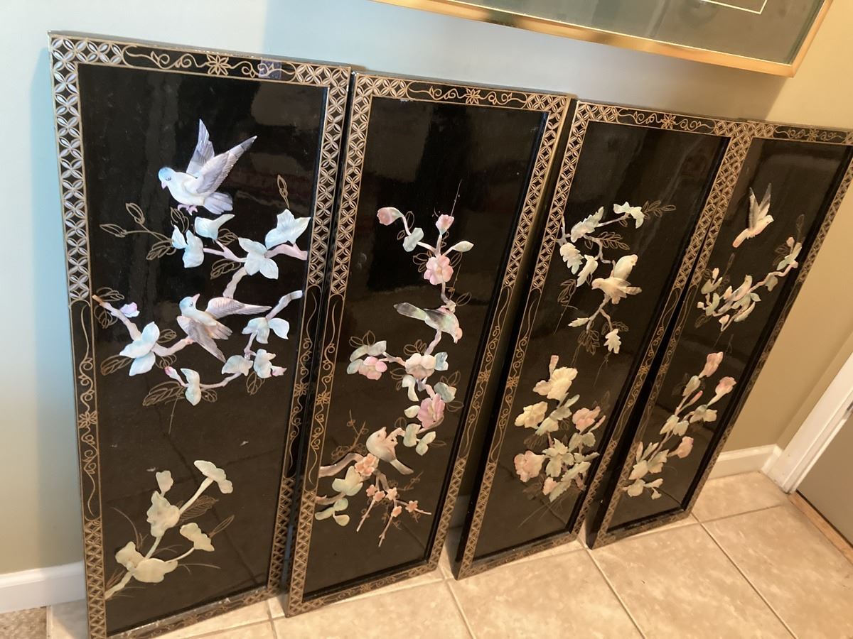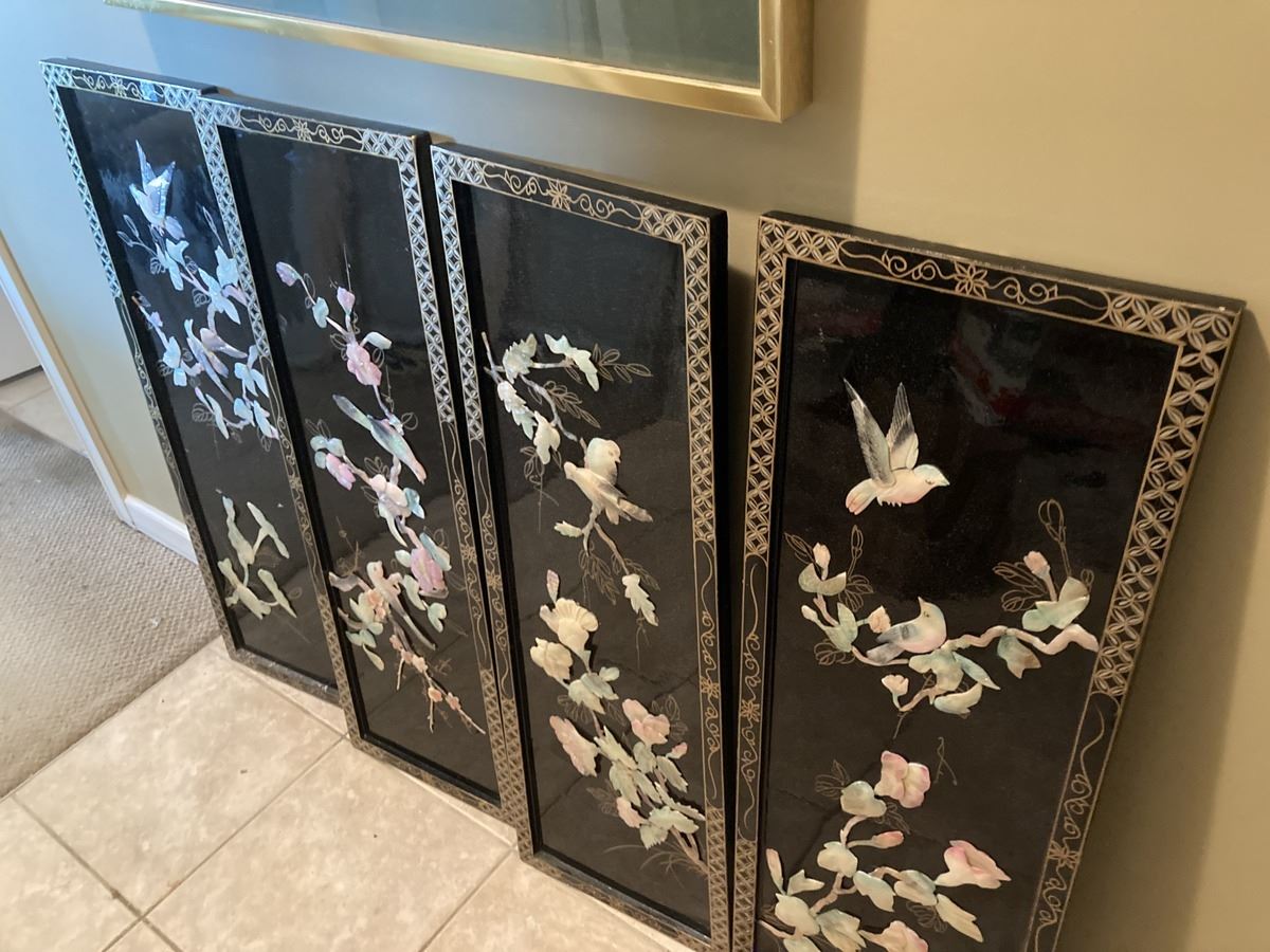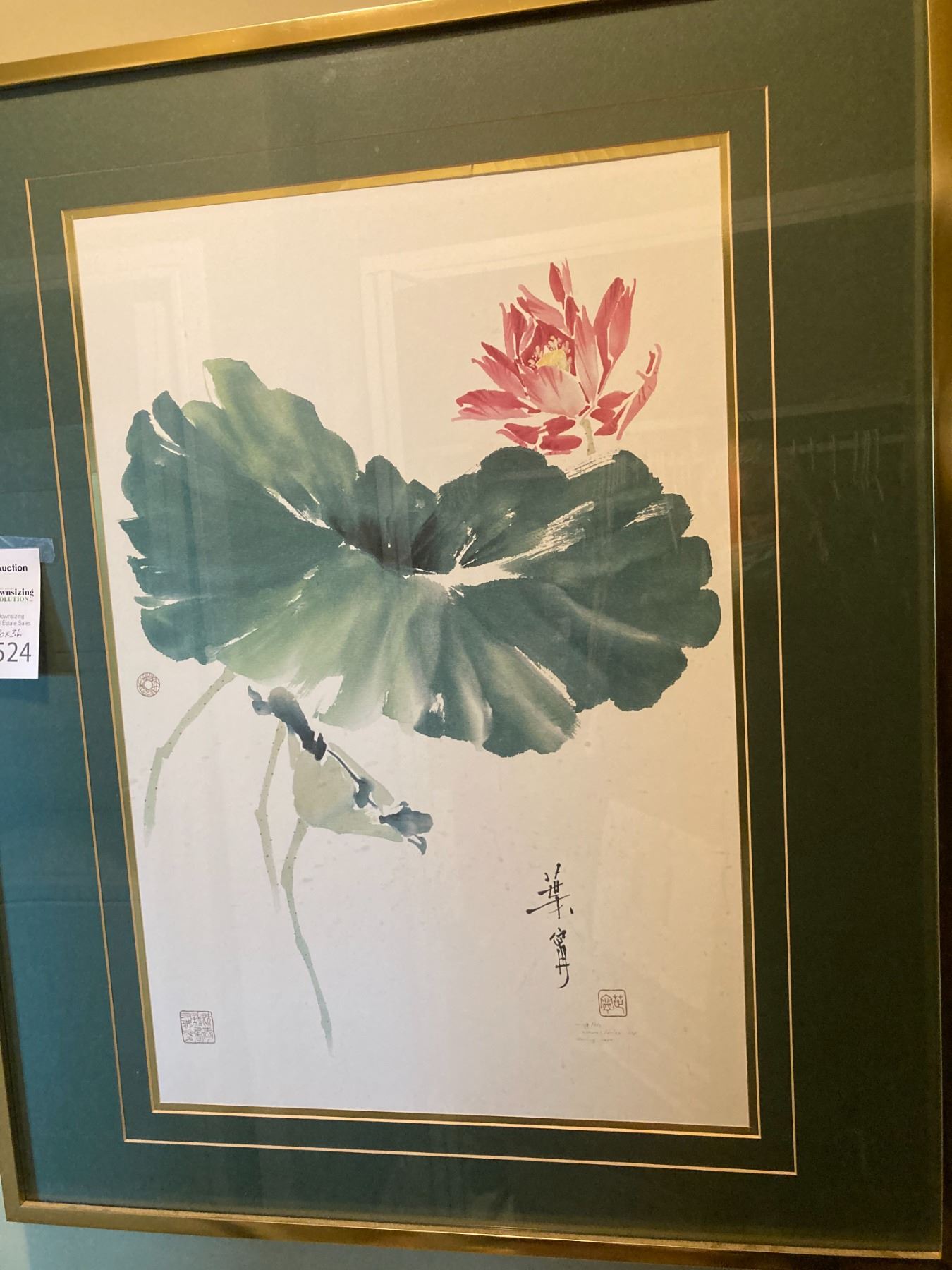 Signed watercolour by Ning Yeh 30x36, and 4 Asian style pieces. Please note warping on Asian style art. Pickup 9-10am.