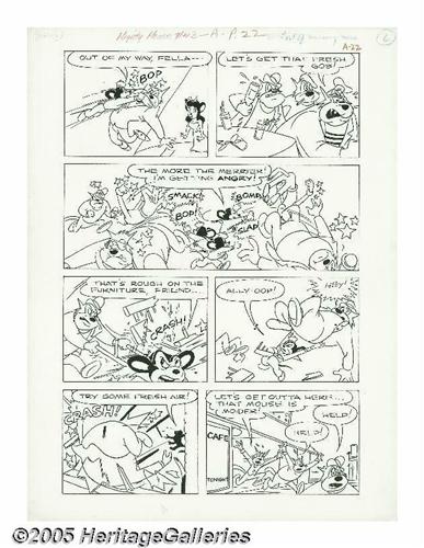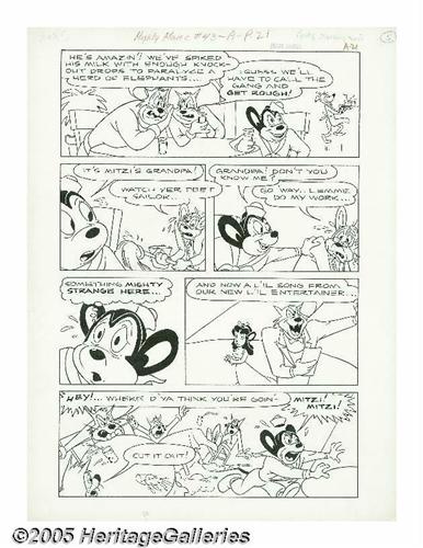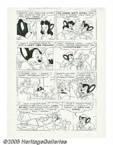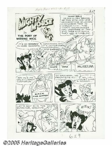 <B>Art Bartsch (attributed) - Mighty Mouse #43 Page Original Art, Group of 7 (St. John, 1953).</B></I> Mighty Mouse takes on a gang behind a wave of waterfront crime in these first seven pages from the incomplete story, "The Port of Missing Mice." The image area of each page is 12" x 18", and the art is in Excellent condition.