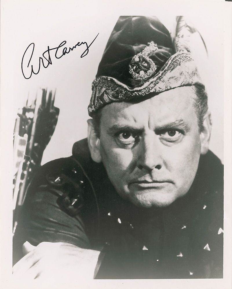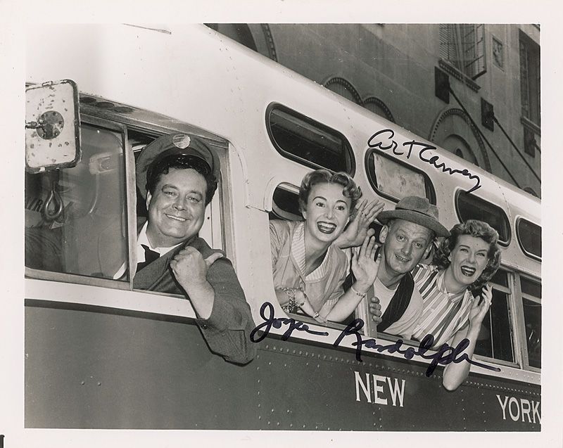 Two photos: one glossy 8 x 10 photo of Carney as the Archer in Batman, signed in black felt tip; and one 10 x 8 photo from The Honeymooners, signed by Carney and Joyce Randolph in black felt tip. In fine condition.