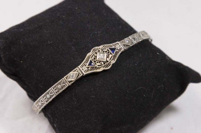 With diamond and sapphires. Approx. 1.3 grams. Approx. 9 dwt. (4145)