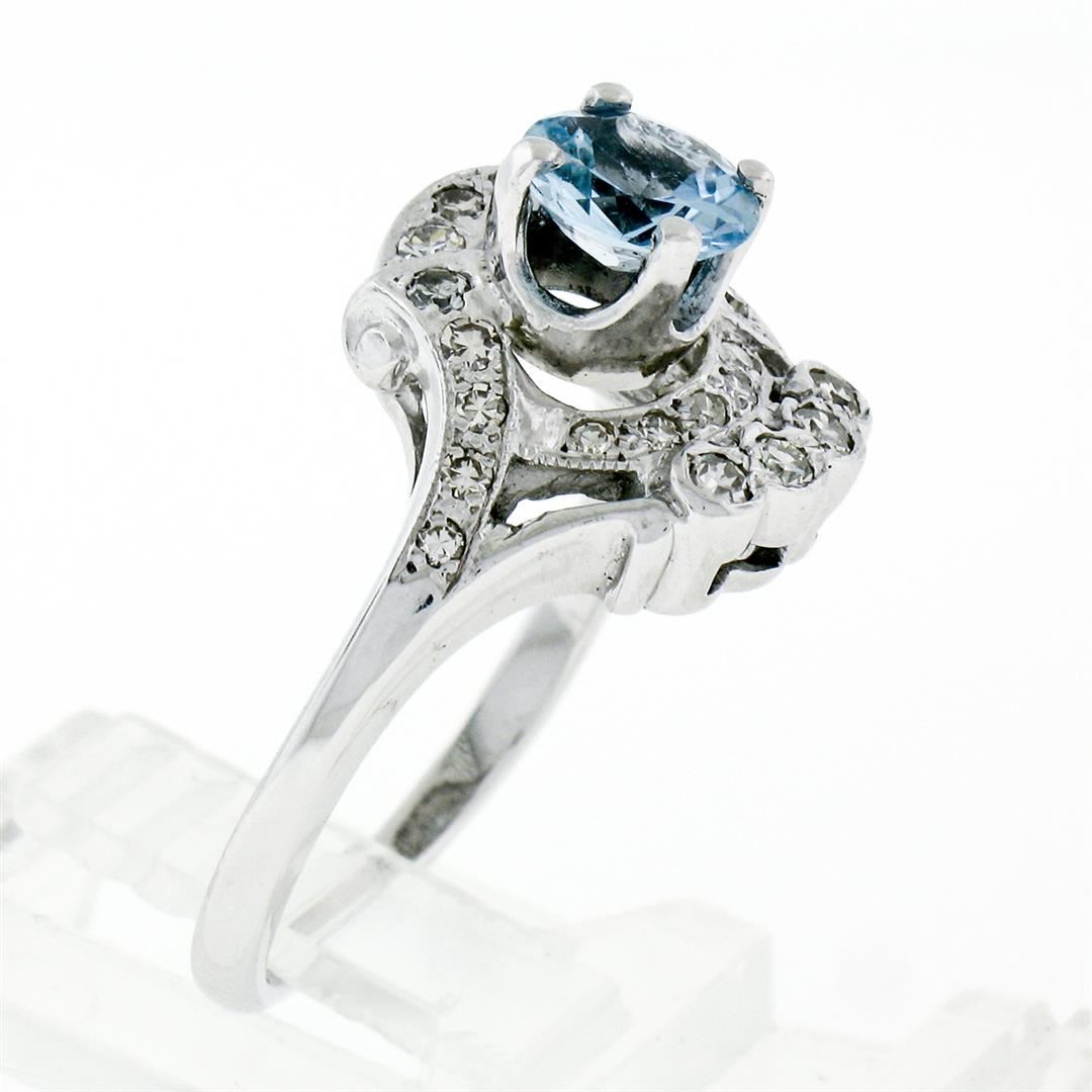 Art Deco 14k White Gold 1.45 ctw Round Aquamarine and Diamond Cocktail Ring