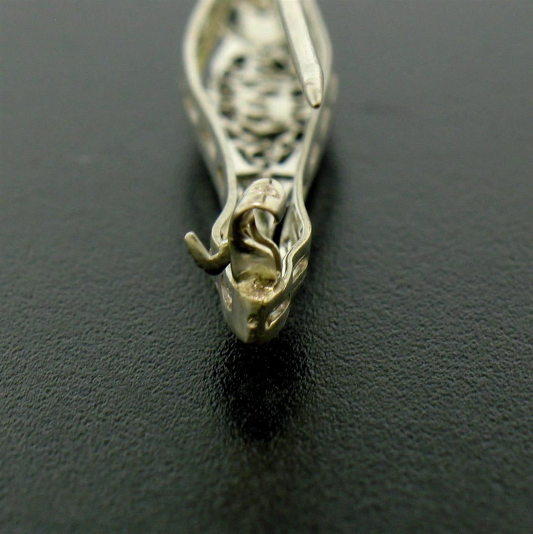 One Art Deco 14k White Gold Open Filigree Milgrain Bar Pin Brooch w/ 4pt Euro Diamond. Item Details: Material: 14k Solid White Gold, Total Weight: 3.3 Grams, Stone(s): (1) Natural Genuine Diamond - Round European Cut - Prong Set - I/J Color - SI1 Clarity - 0.04ct (approx.), Overall Height: 7.46mm, Overall Width: 63.18mm, Overall Thickness: 4.33mm, Condition: Antique, art deco period piece. Great condition!