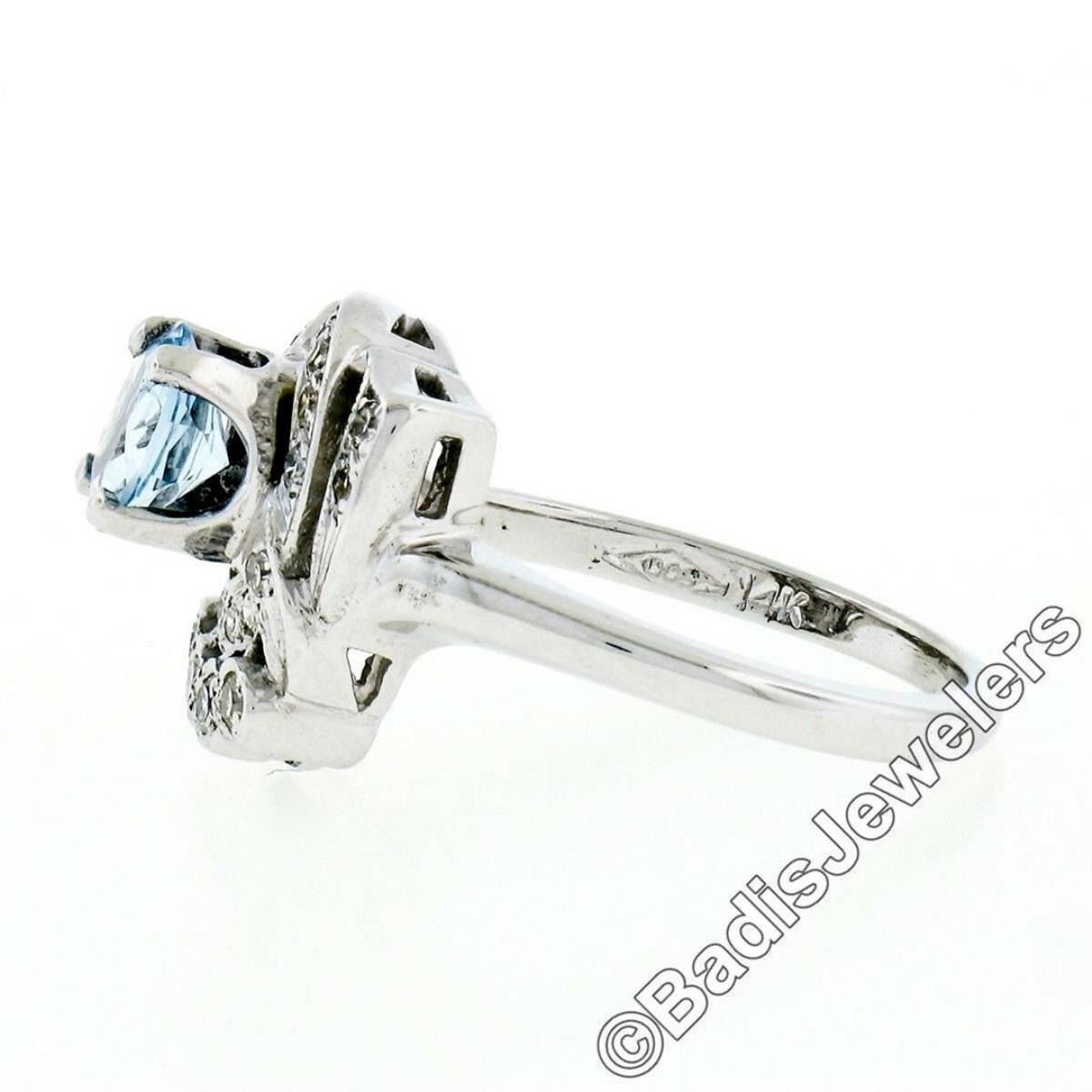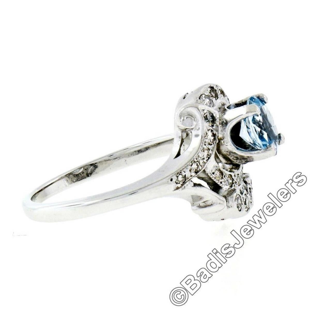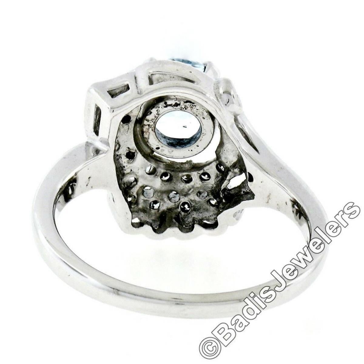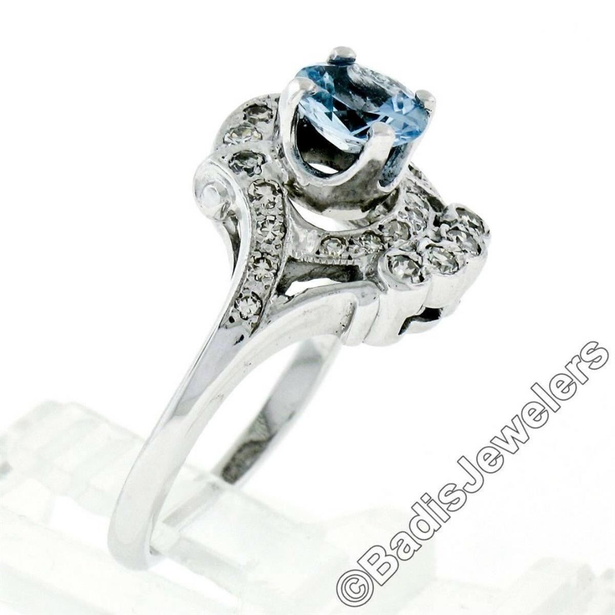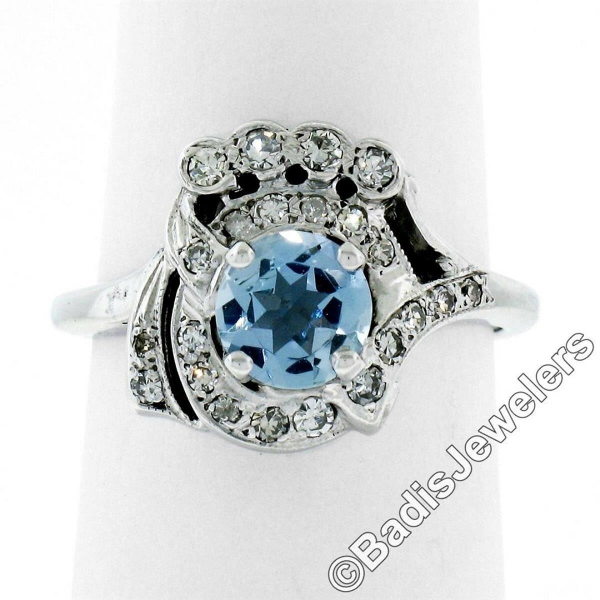 Art Deco 14kt White Gold 1.45 ctw Round Aquamarine and Diamond Cocktail Ring