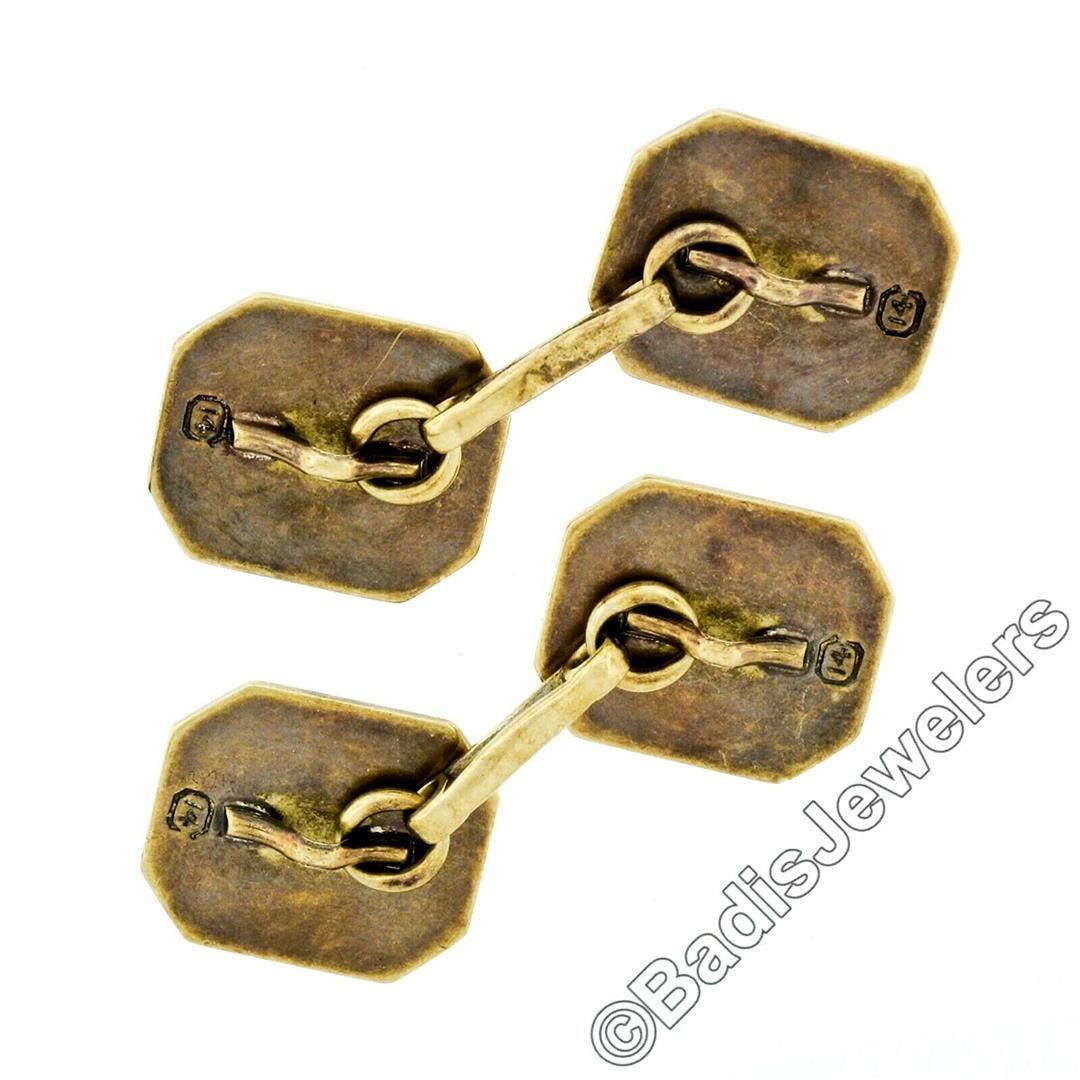 Art Deco 14kt Yellow Gold Grooved Dual Rectangular Panel Cuff Links