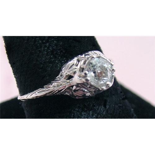 <tr><td>Title:Art Deco 18K Gold Filigree Diamond Ring</td></tr>