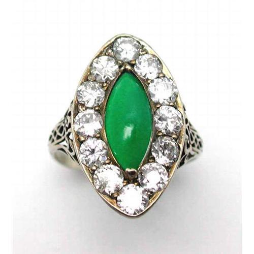 <tr><td>Title:Art Deco 18Kt, Jade and Diamond Ring</td></tr>