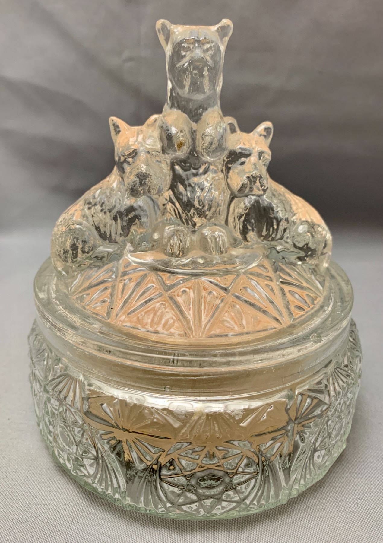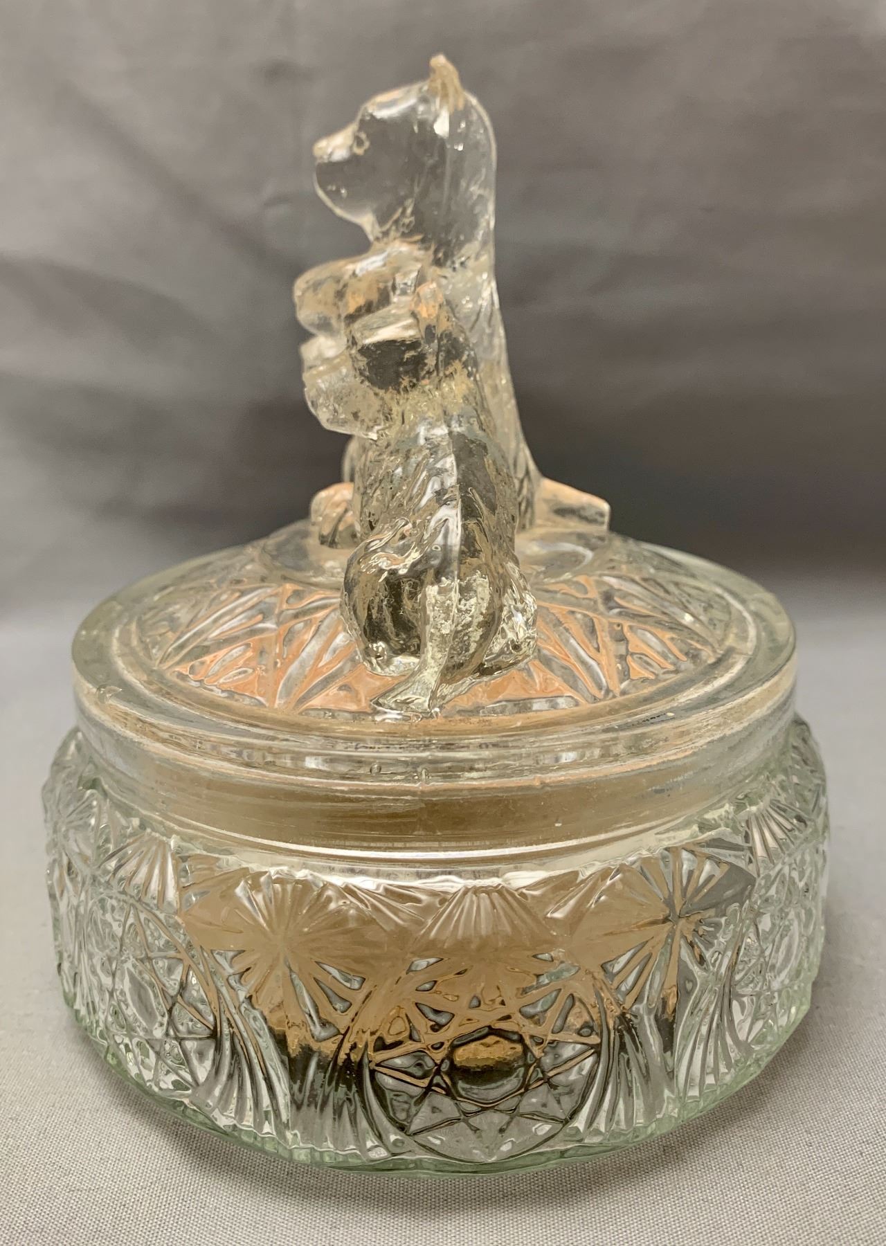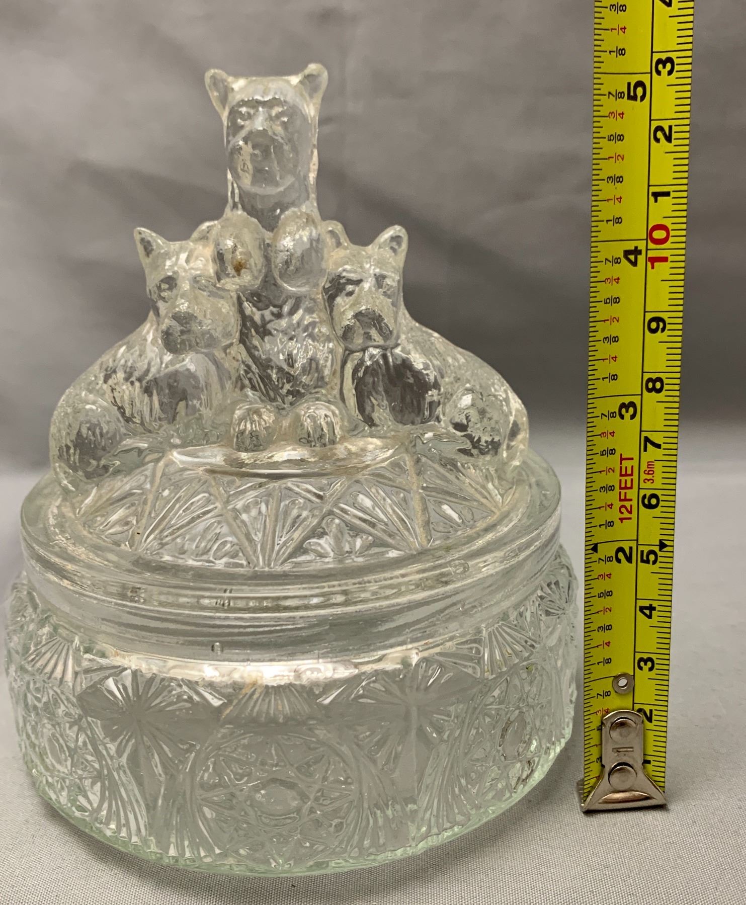 Art Deco 1930's Pressed Glass "Three Scotties" Powder Jar with original powder! RARE!