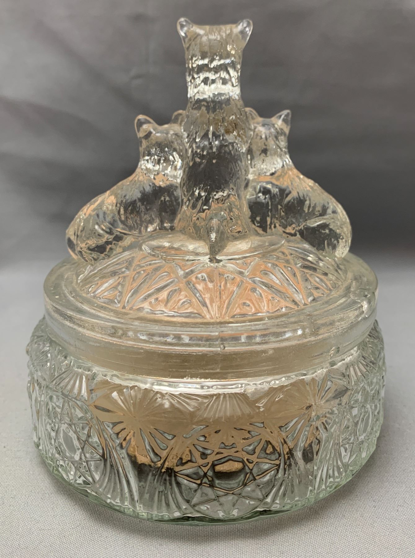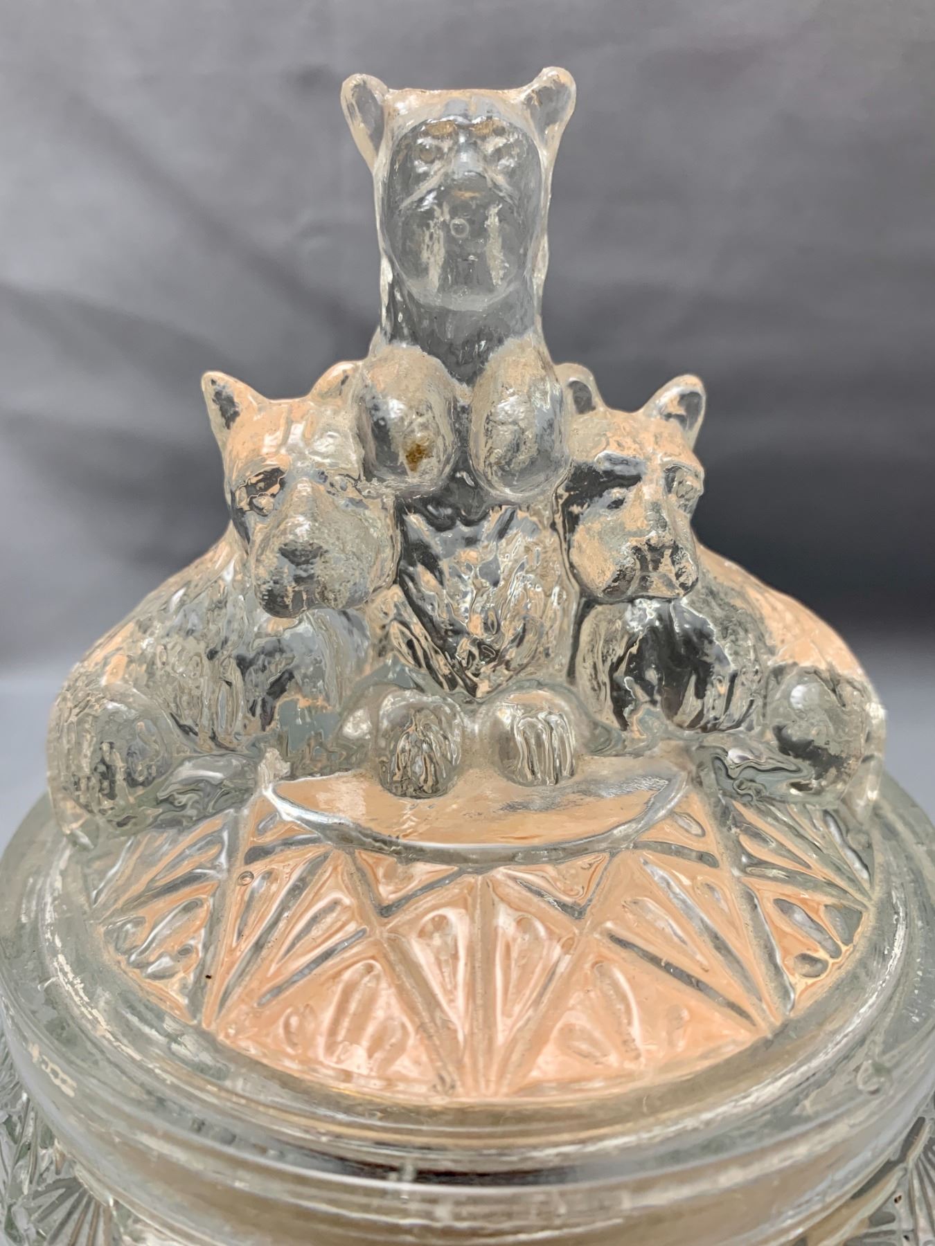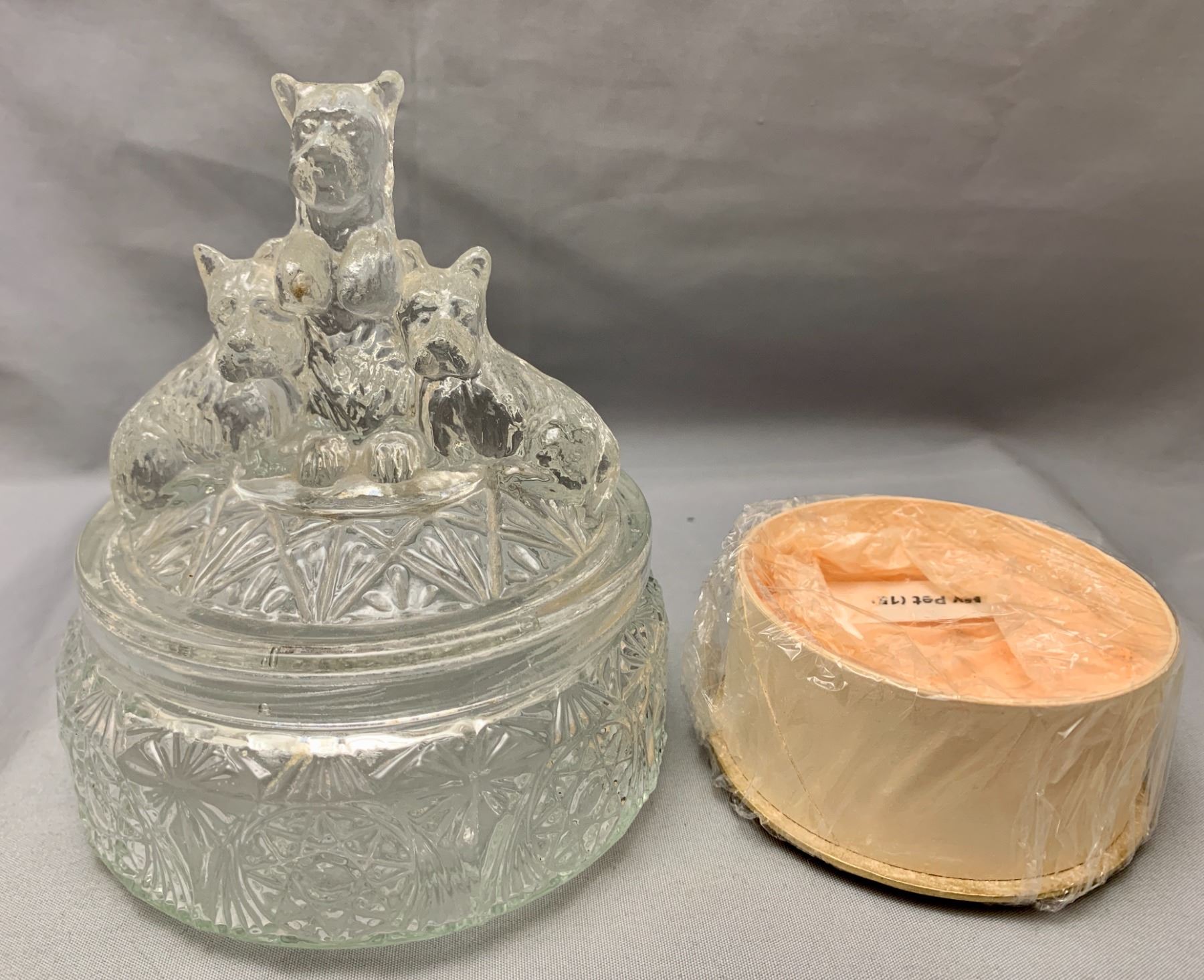 Art Deco 1930's Pressed Glass "Three Scotties" Powder Jar with original powder! RARE!