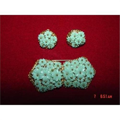 <tr><td>Title:Art Deco 3 Piece Celluloid Brooch Earrings</td></tr>
