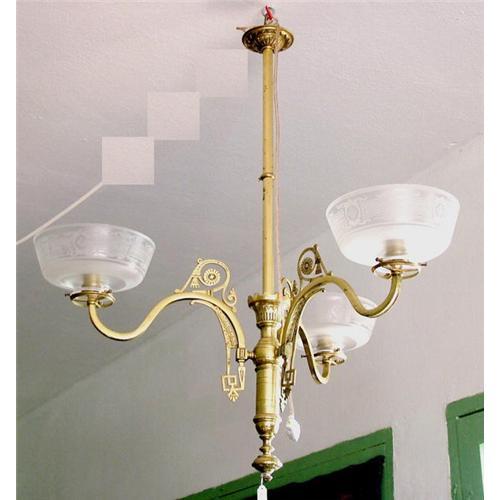 <tr><td>Title:Art Deco 3L chandelier etched shades</td></tr>