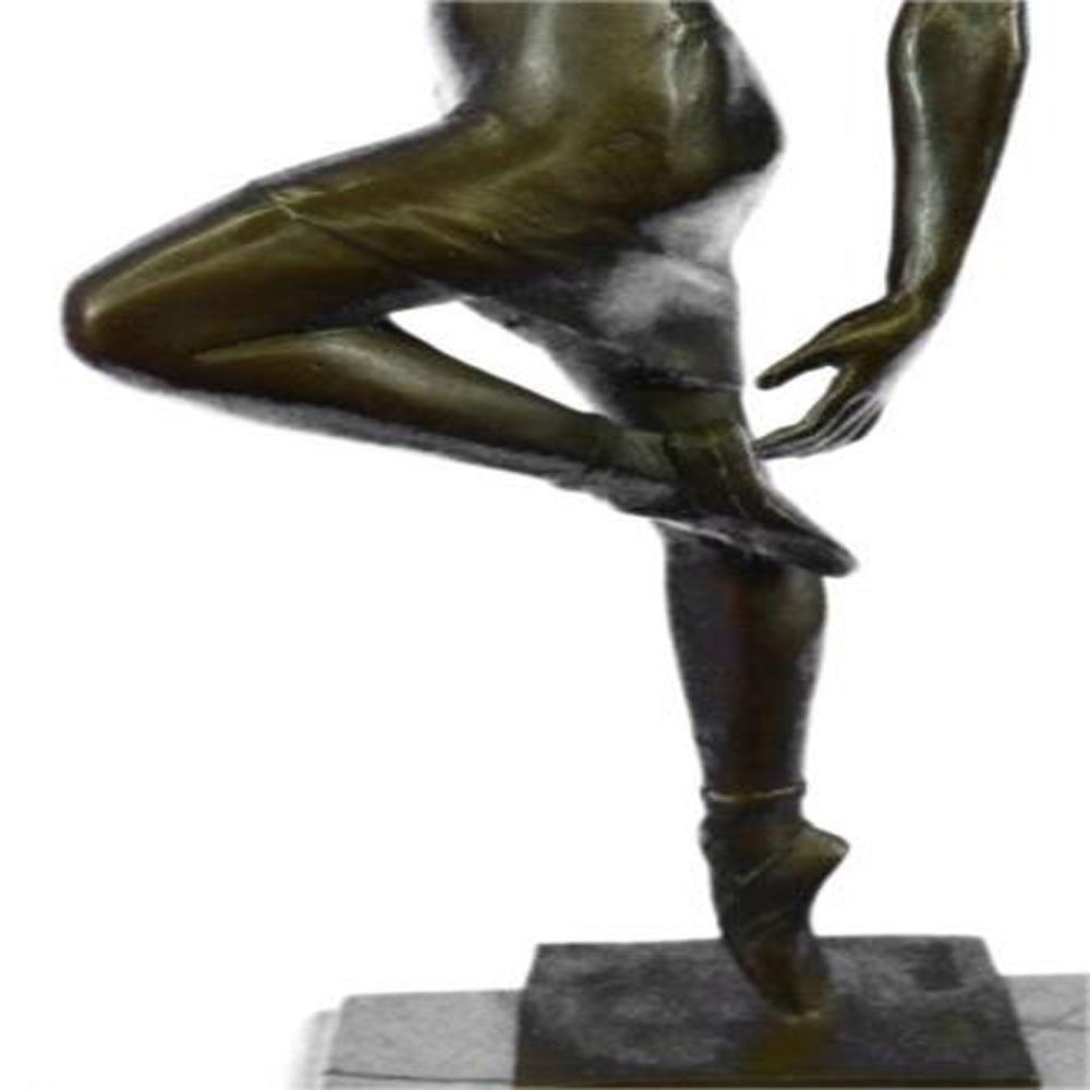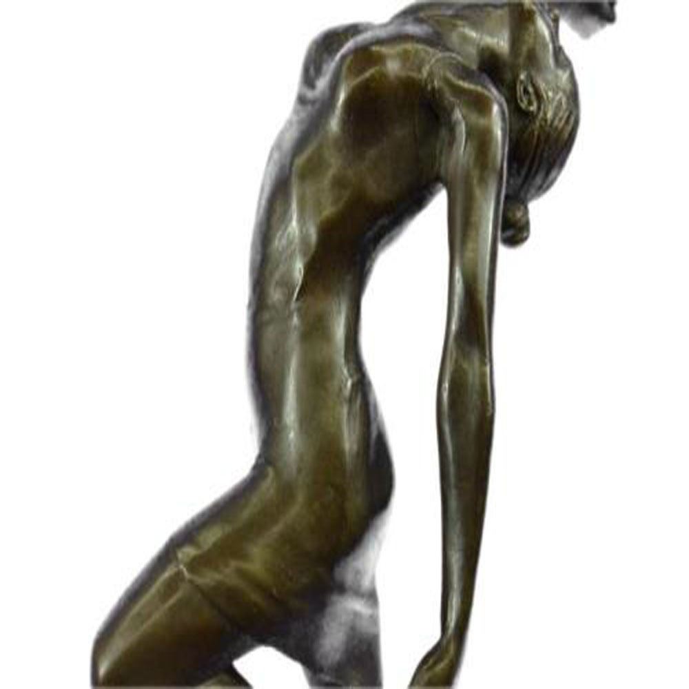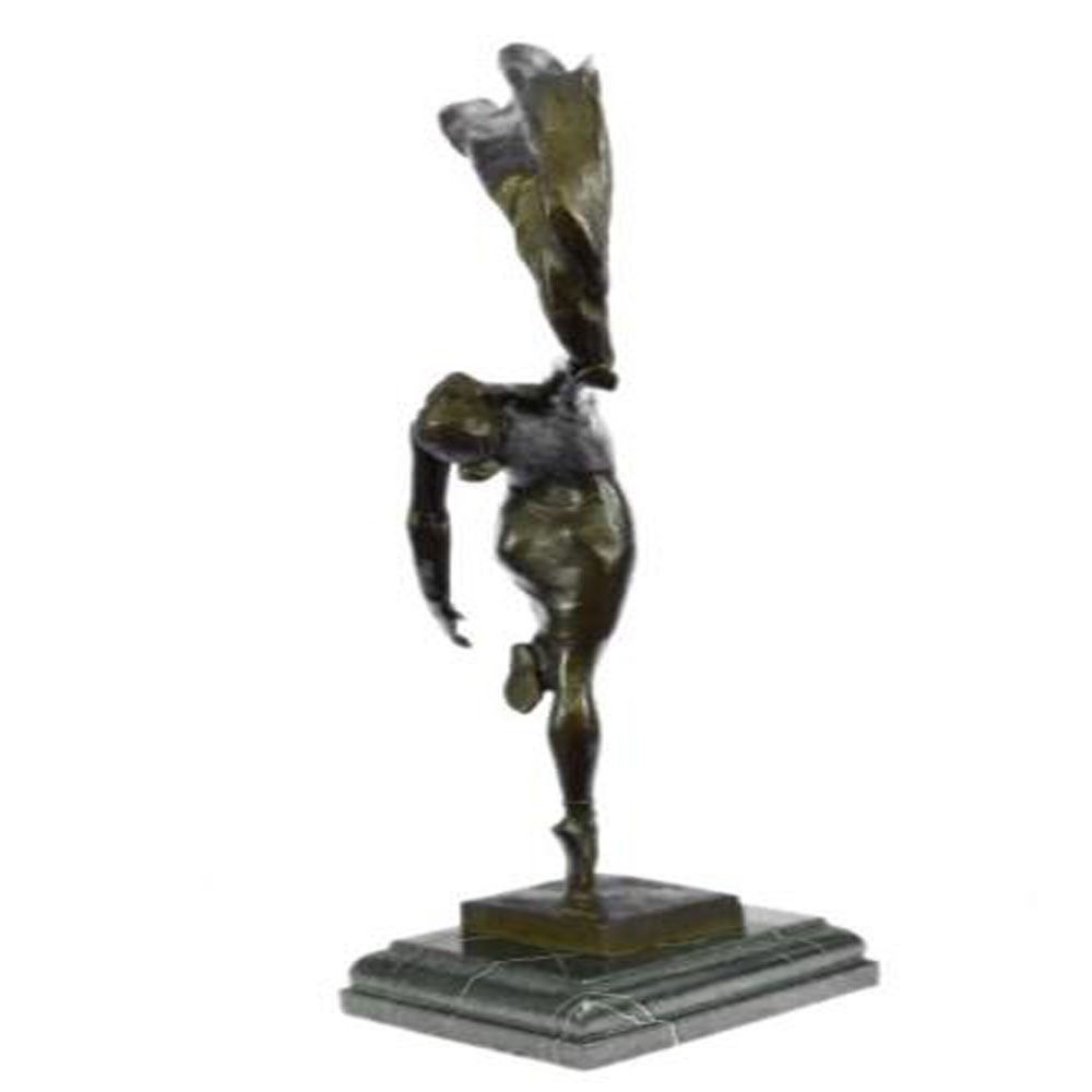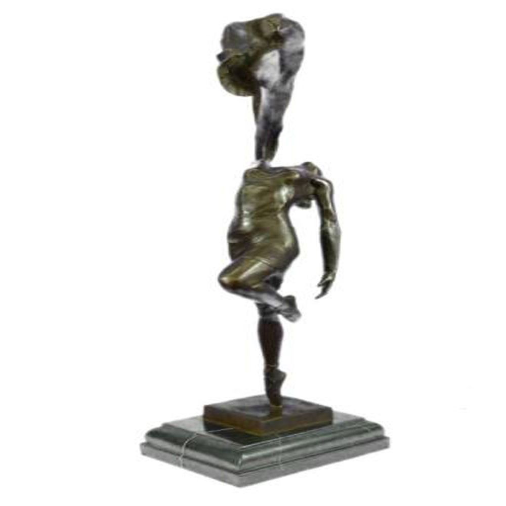The sexy dancer is seen leaping into the air as a fabric banner, coated in a vibrant red patina, twines itself around her sculpted body. This work of art rejoices the female figure and shows attention to the body under the influence of movement. But most importantly, it’s essence characterizes the spirit within the body that wishes to bound out into everything and everywhere. She was cast using the archaic method of lost wax casting and her skin tone stained with a brown patina finish and is mounted upon a marble base. Bronze Dimensions with Marble Base: Height 19 X Width 12 Inches. Weight: 15 LBS.