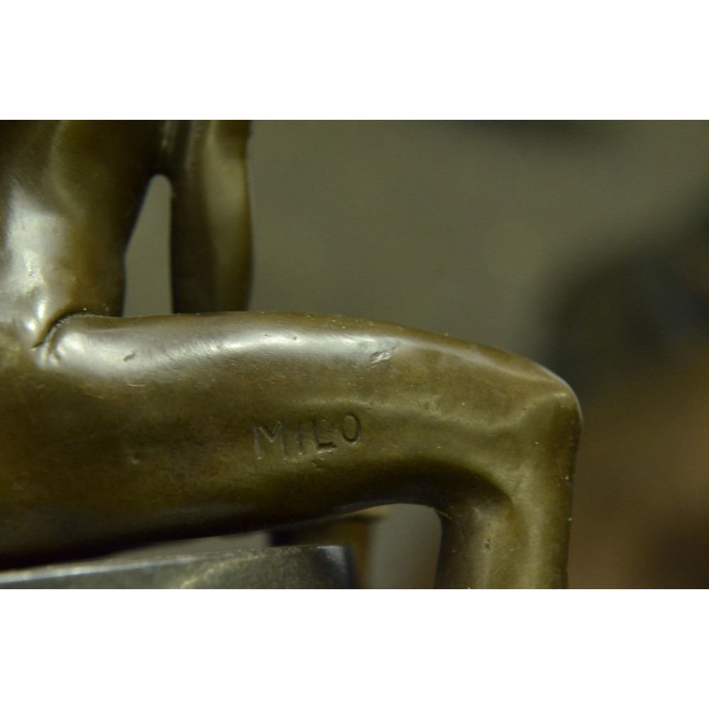 This sculpture is 100% hot cast bronze metal and was handmade by artists using the ancient lost wax casting process.  This sculpture contains no resins or cheap fillers. Condition: New Bronze Dimensions: Height 10.5" x Width 4" Marble Dimensions: Diameter 4" Height without Base: 9.5" Approximate Weight : 10 LBS Signature: Milo Original or Reproduction: Original