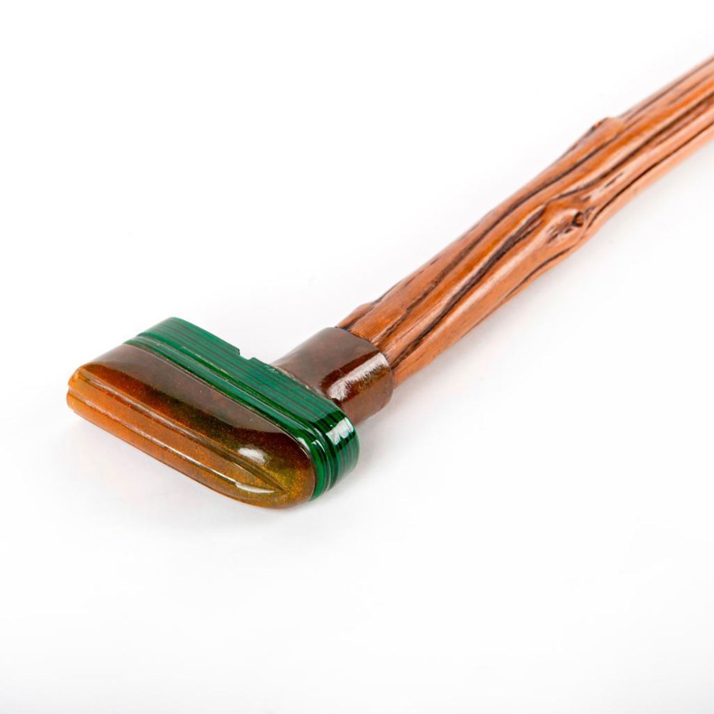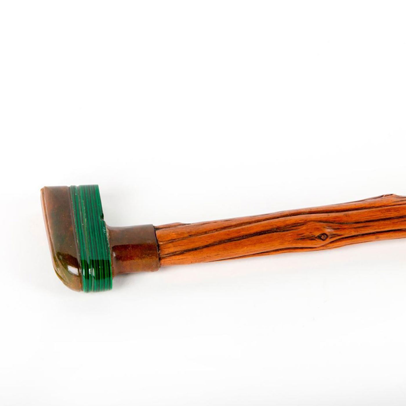 Art deco cane/walking stick. The shaft is 33.5"L hand carved briarwood. The ferrule is 1" brass/steel. Excellent condition with age related wear. Fashion Canes and Walking Sticks