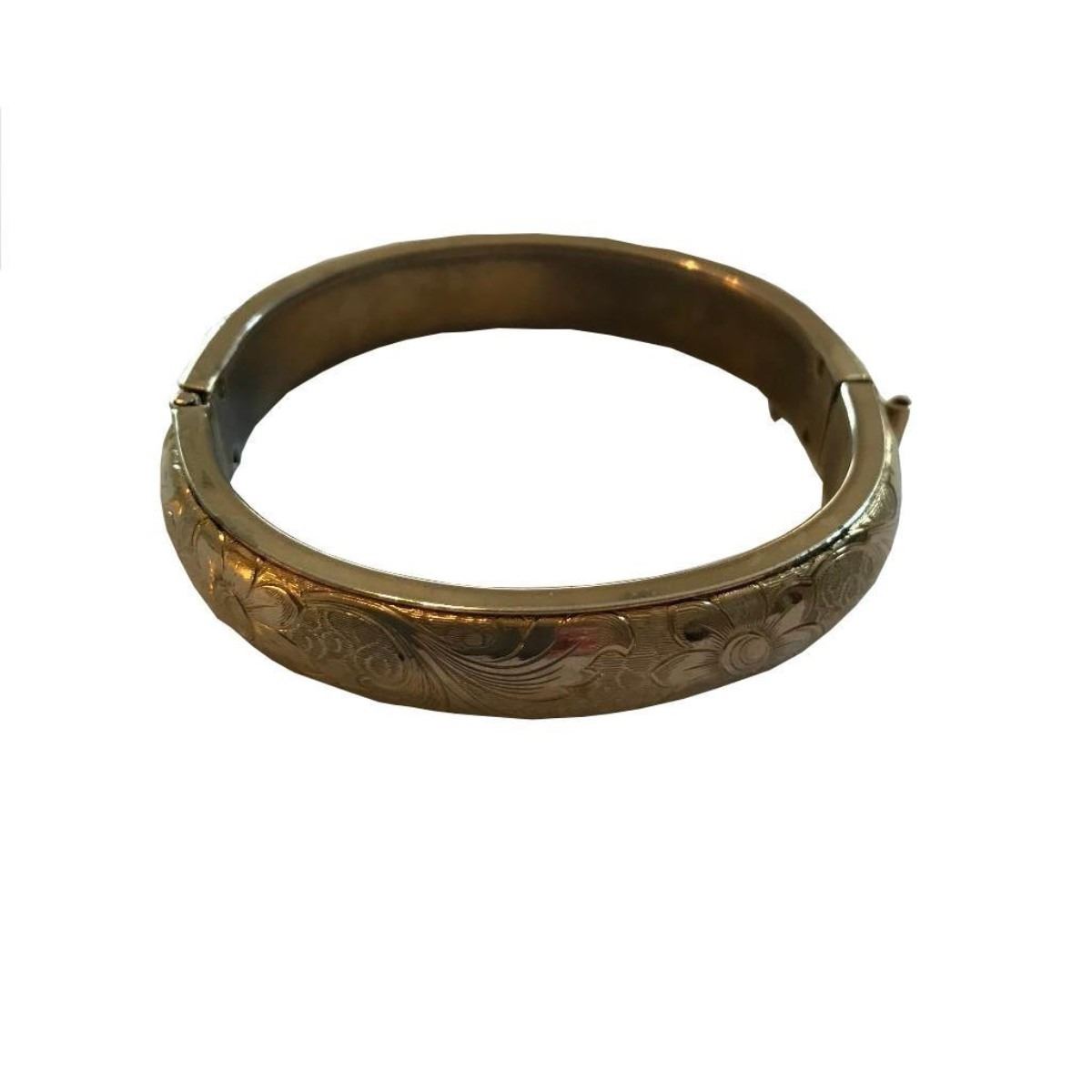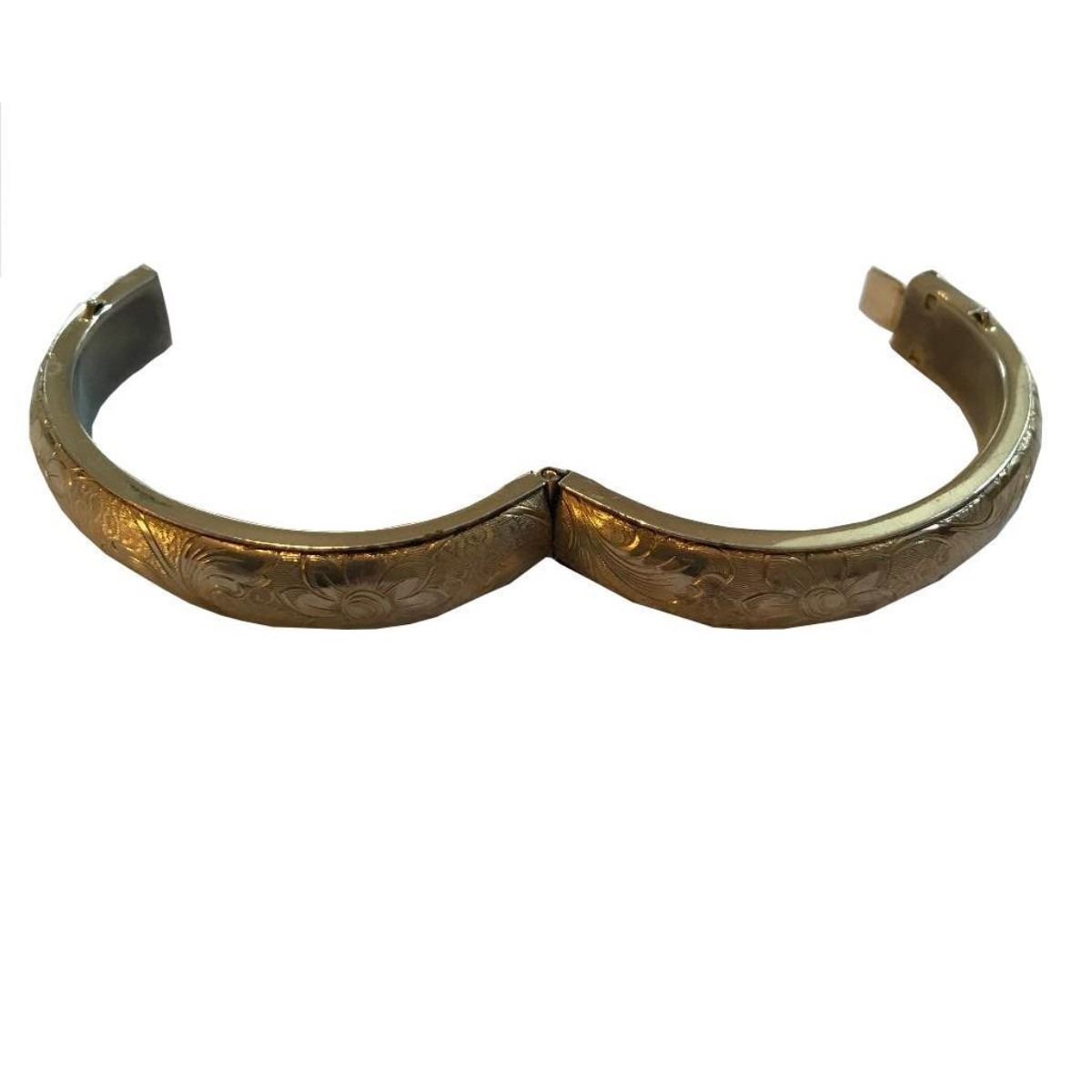 Art Deco era, chased silver hinged bracelet, decorated with flowers & vines. 1/2" W. * missing safety chain.