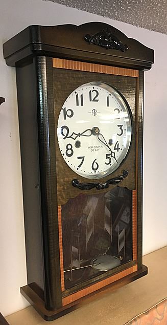 Aikosha 30-Day Art deco style clock with etched glass, pendulum