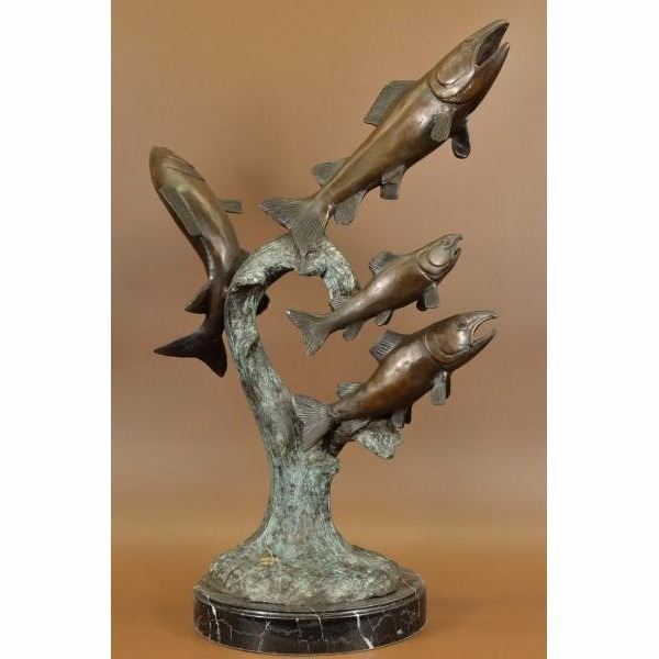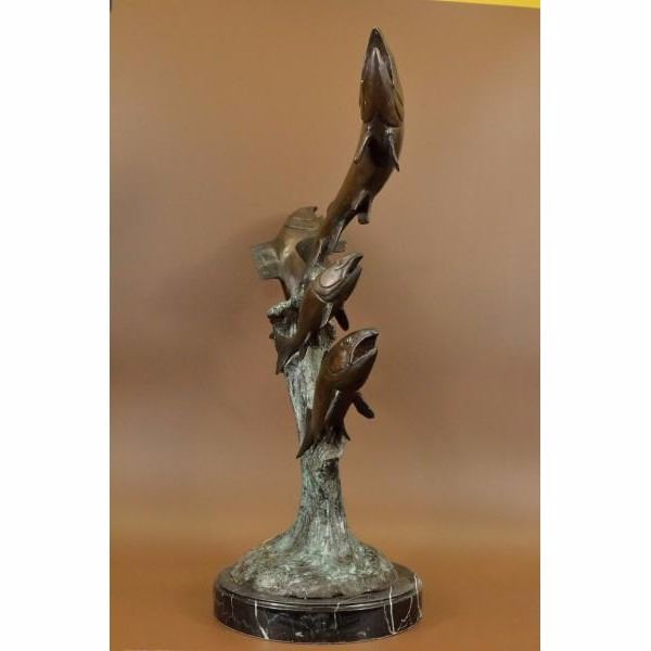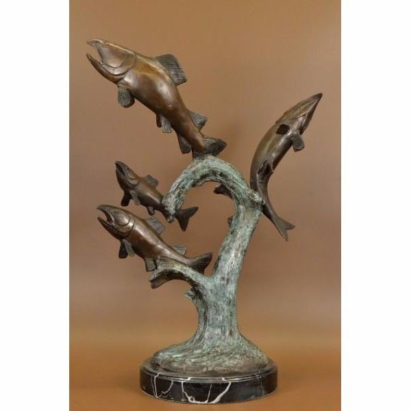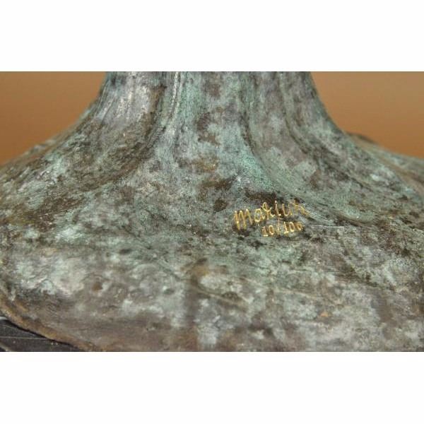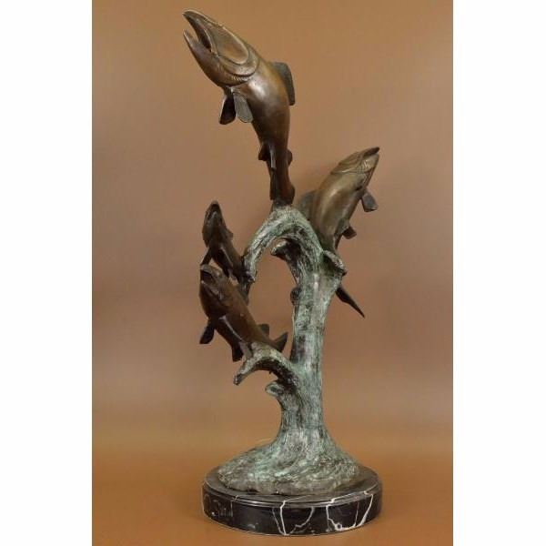 In his own award-winning style, Marius has captured the subtle nuances that reveal the character and uniqueness of each individual species. After years of study in the areas of anatomy, color and design, he has taken great care to portray these much loved fishes in all their splendor. This Limited Edition original was designed using the lost wax method that allows for the excellent quality of the piece. It rests on a square black marble base. It is signedand numbered by the artistMarius. Condition :This sculpture is in perfect condition. Bronze Dimensions with Marble Base:Height 25" x Width 18" Marble Dimensions: Diameter 10.5" Height without base: 24" Weight : 26 LBS Inventory: 16-5847614561