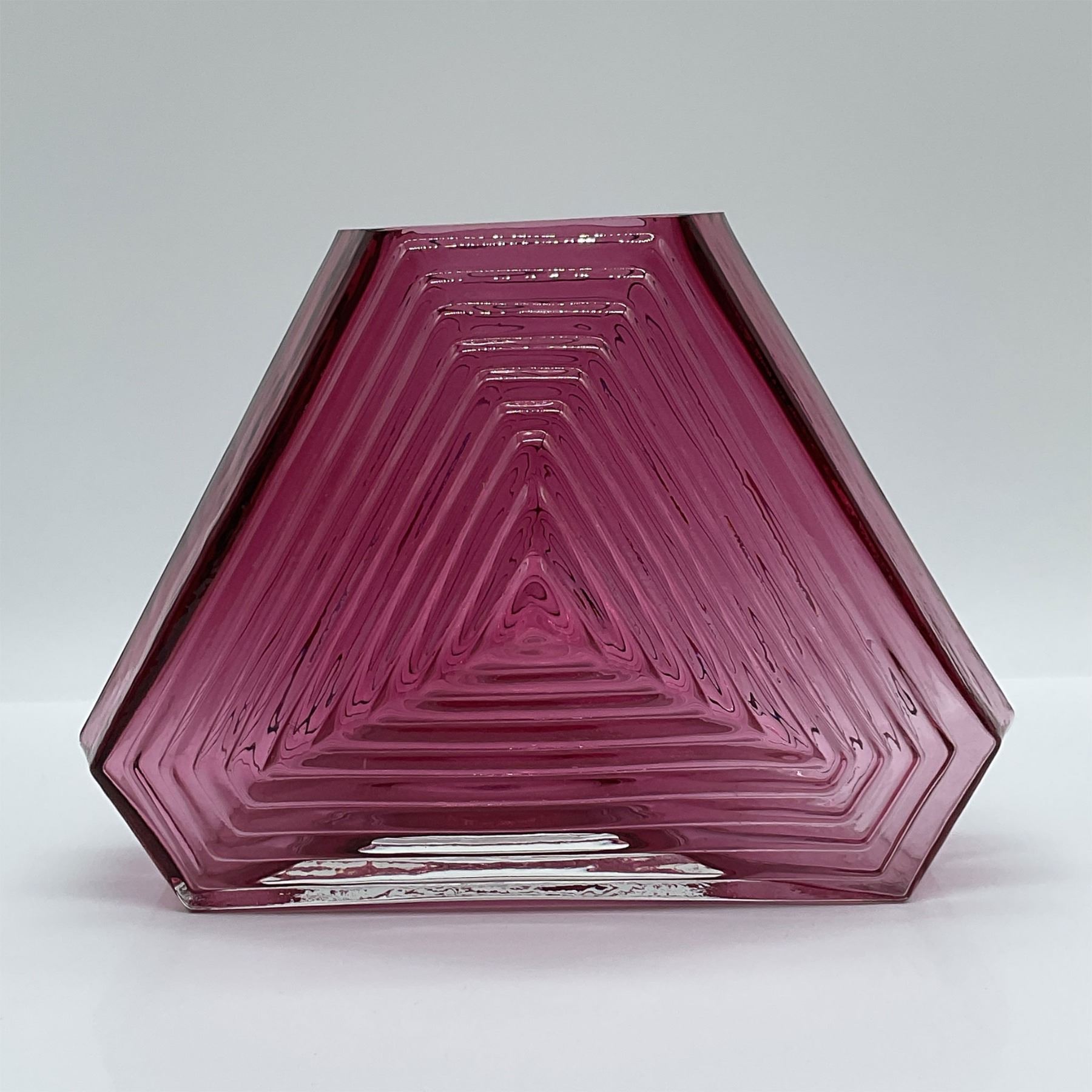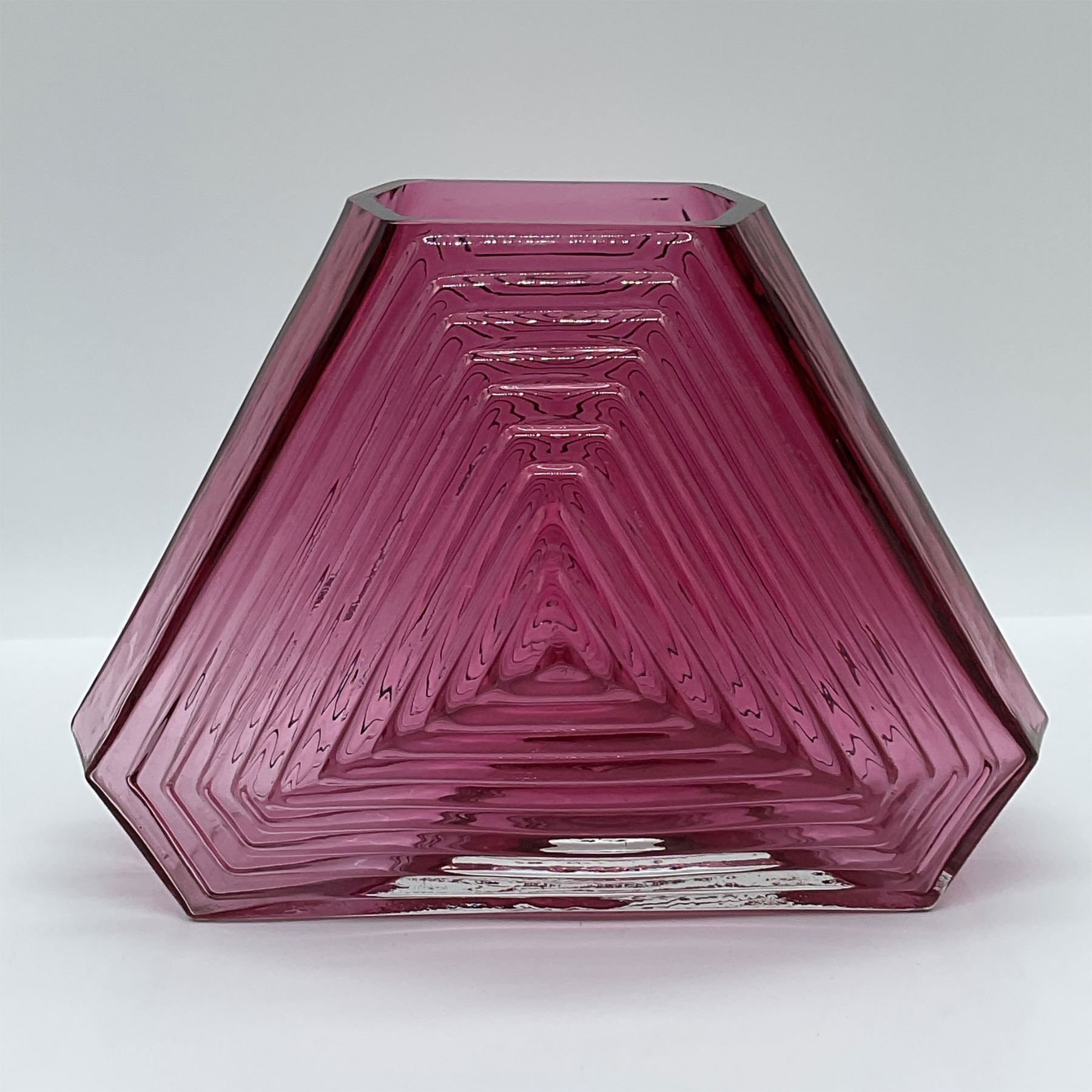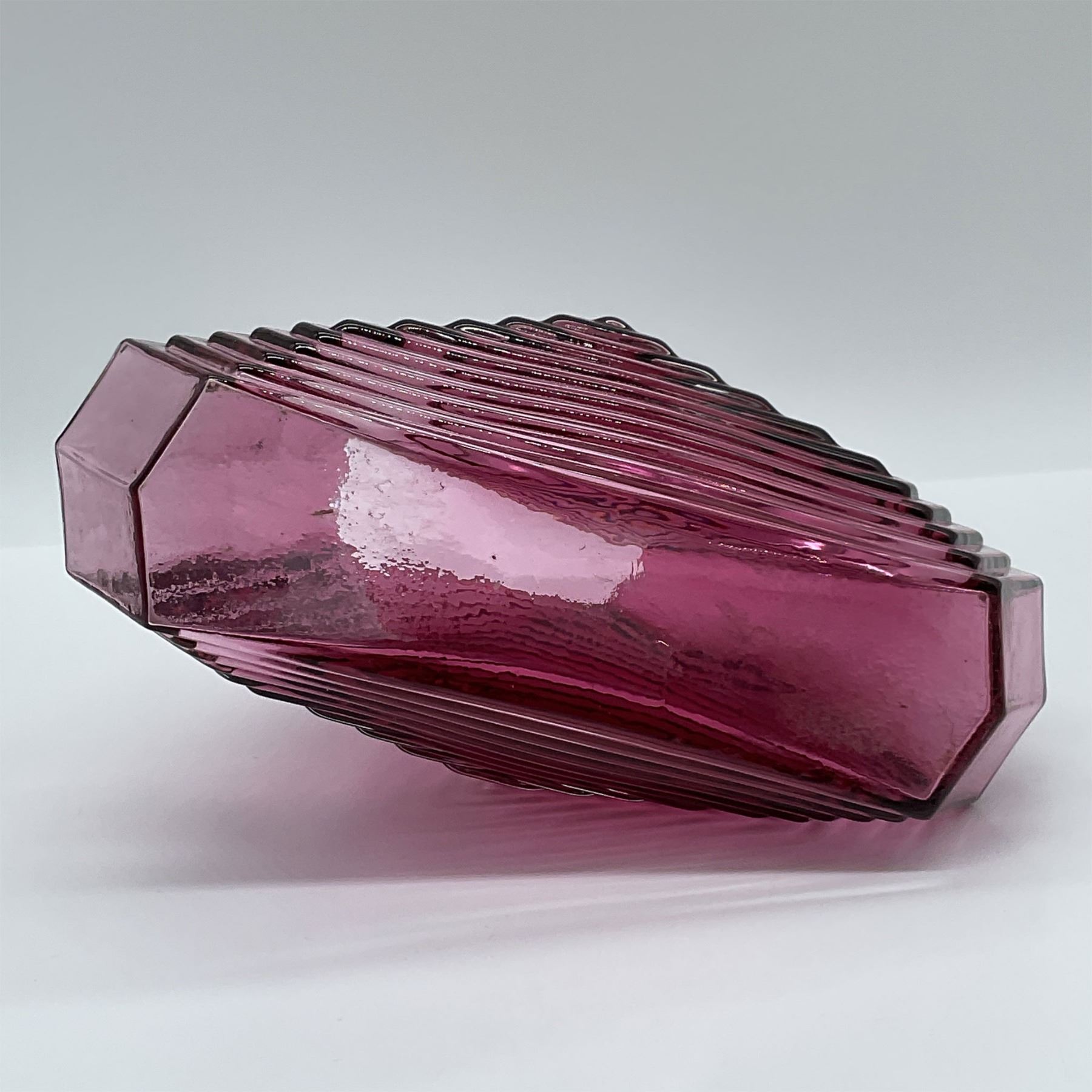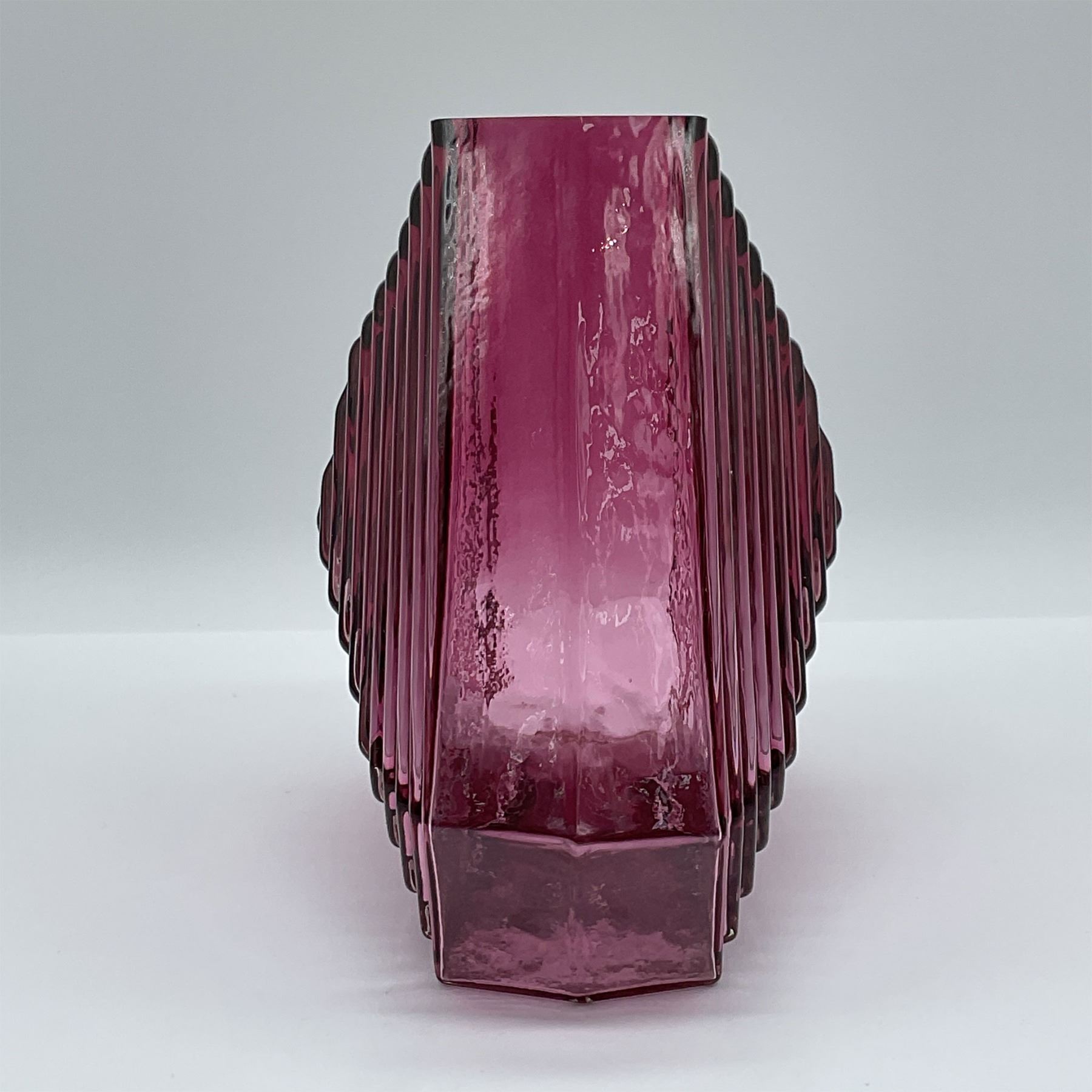 Art Deco Cranberry Glass Vase, Geometric Ribbed Design