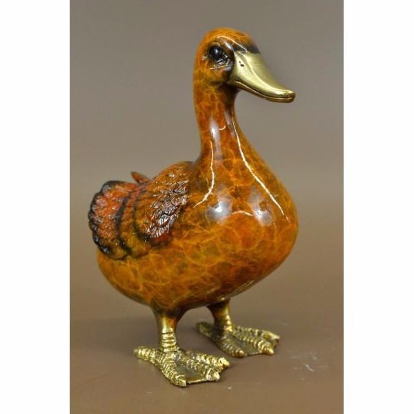 Delightful Duck Bronze Sculpture, After J. Moigniez .This bronze sculpture was produced using the Lost Wax casting method. The Lost Wax Cast method is the most precise metal casting technique in existence, ensuring exquisite detail of the original host model which is usually sculpted in clay or wax. This Lost Wax casting method is an extremely labor intensive and expensive process, but the end results produce a Heirloom Quality Masterpiece! Condition: This sculpture is in perfect condition. Bronze Dimensions :Height 7.5" x Width 7" Weight :3 LBS Inventory : 39-56628NA3793