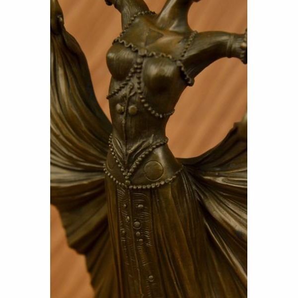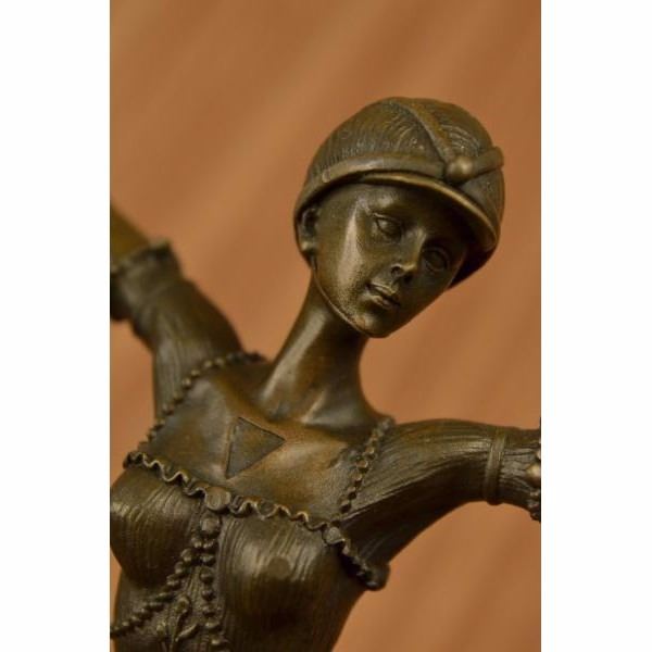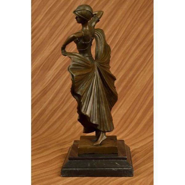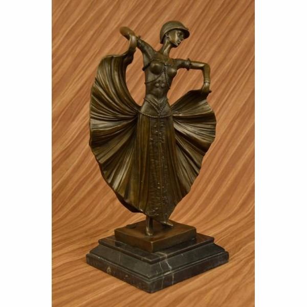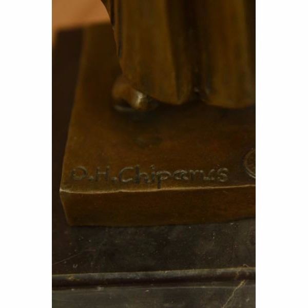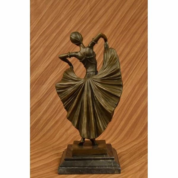 A fabulous bronze study of the Dancer 'Tera Guinob' from the "Spirit of Paris" at the Theater de la Madelaine between 1924 and 1925. The bronze has a wonderful gilded patination highlighted with enamel colors. Raised on a variegated brown bronze plinth and in a very good condition and is signed D.H. Chiparus. Description Condition: This sculpture is in perfect condition. Bronze Dimensions with Marble Base:Height 15" x Width 9" Marble Dimensions: 6" X 6". Height without base: 14" Weight : 14 LBS Inventory :23DS1606532