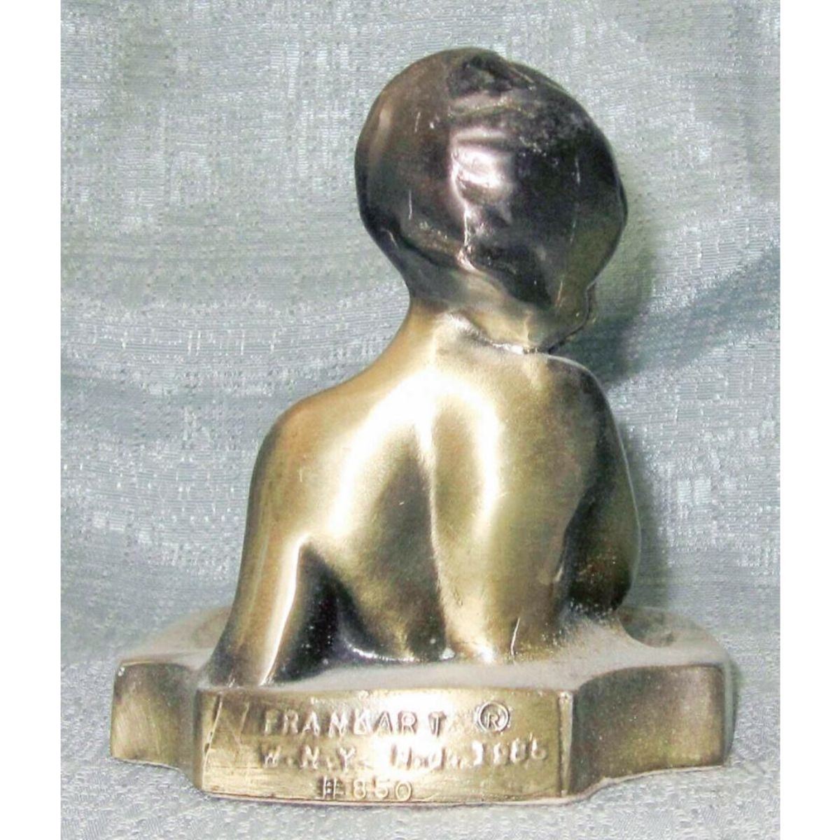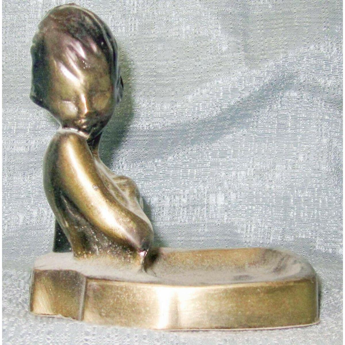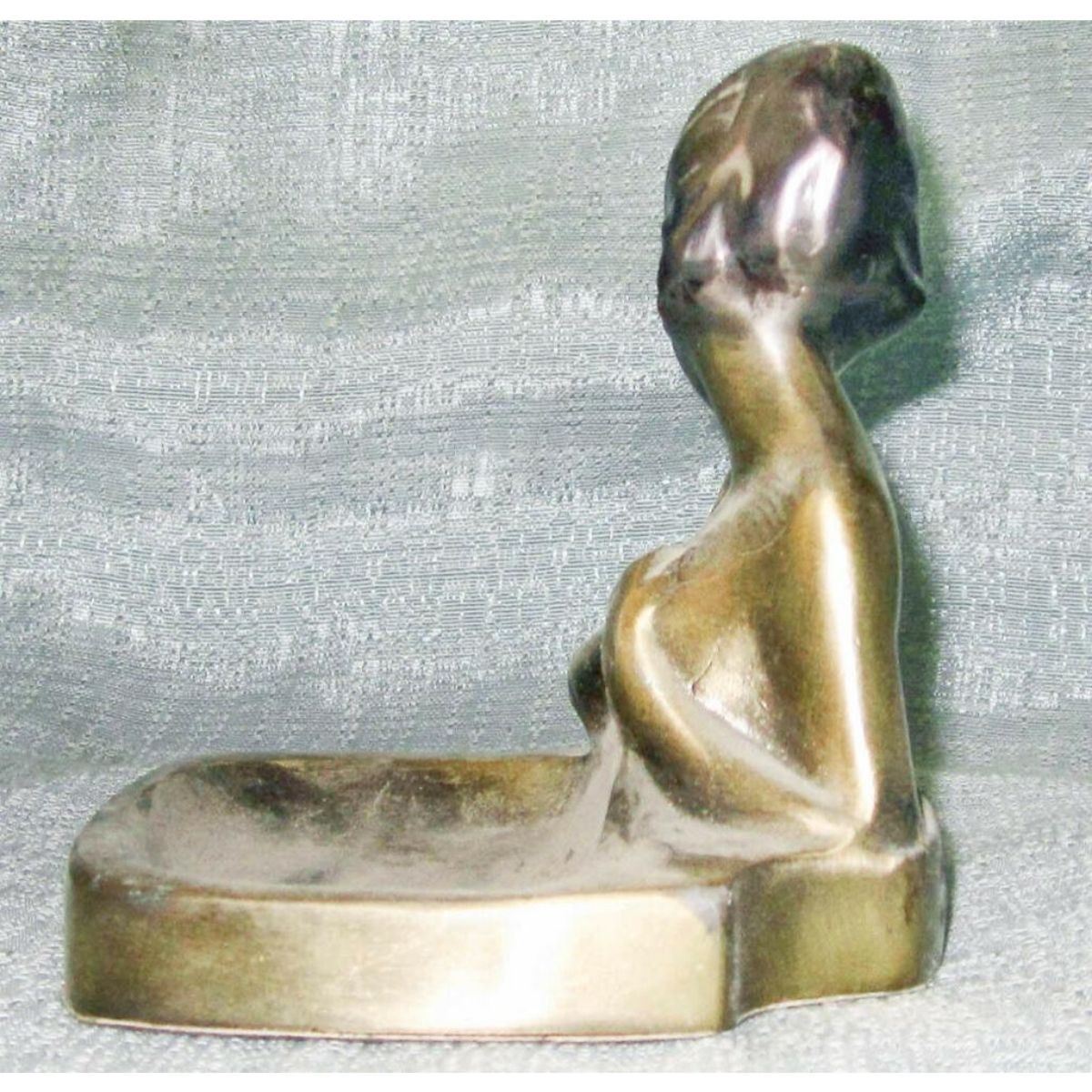 Vintage Art Deco-style Nymph brass-plated aluminum ashtray soap dish, pin dish, vanity tray. 5 1/4" H X 5" W X 5"D. Mid- 1980's casting from an original Frankart mold.Â