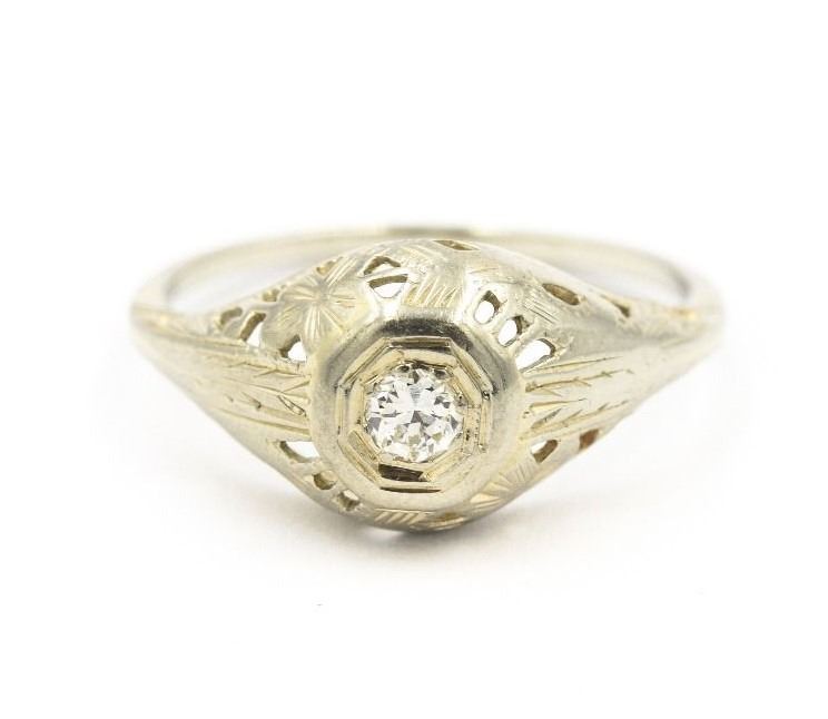 Art Deco White Gold And Diamond Filigree Ring