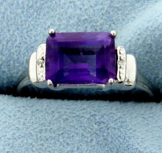The ring contains a 2.25ct amethyst gemstone as well as diamonds and is in platinum over sterling silver. Size 7 1/2 2.2g