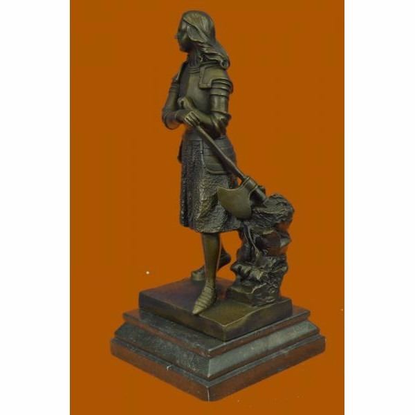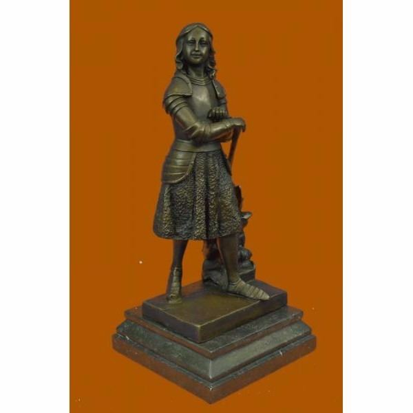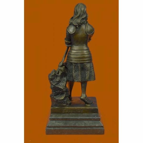 Beautiful bronze sculpture tribute to joan of arc by french master Fremiet features exquisite detail. Bronze Dimensions with Marble Base: Height 12 X Width5 inches. Weight: 8 LBS. Please Note: This is a reproduced bronze sculpture from the original molded and signed. This featured bronze sculpture is a recast after the original, and has been done recently. This 100% bronze sculpture is an abstract piece certain to be a conversation piece.