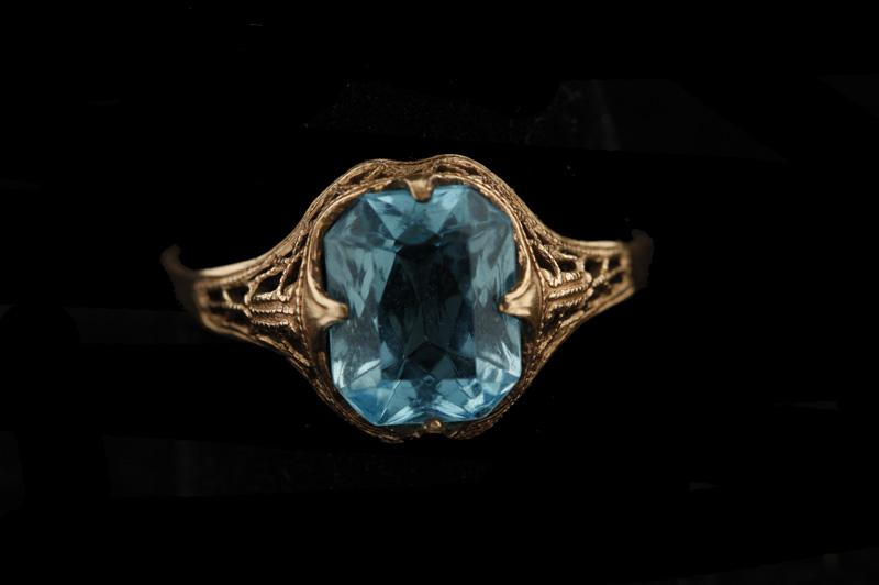 Art Deco Ladies Topaz Ring Set in 14K gold with a very fine filligre type design.Set in 14K gold with a very fine filligre type design.