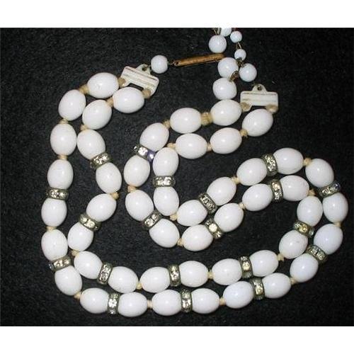 Pre WW11 From Germany - Double Strand Milk Glass Beads with Rhinestone rondels</em></td>