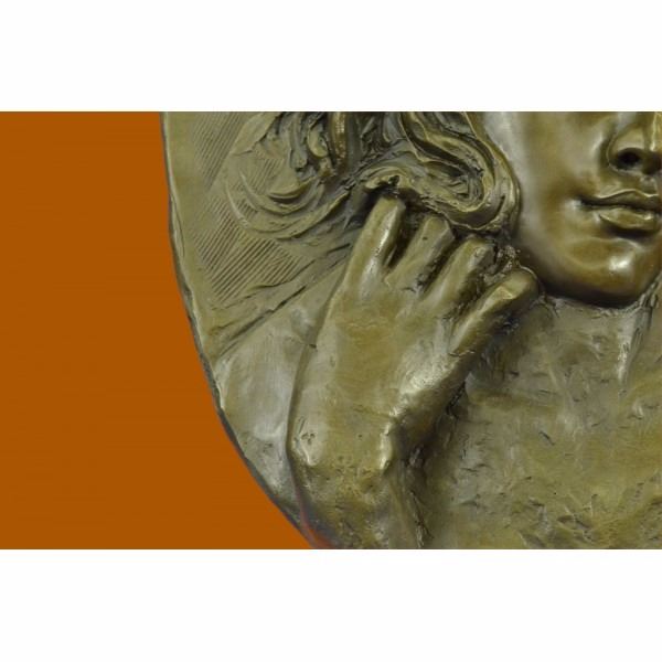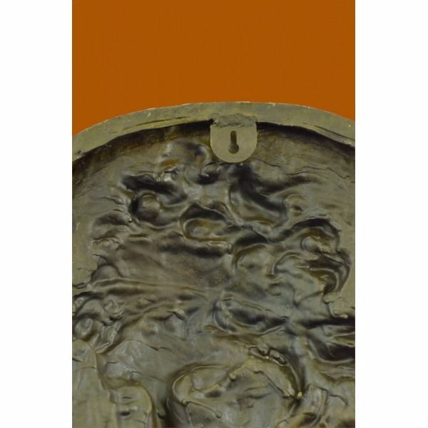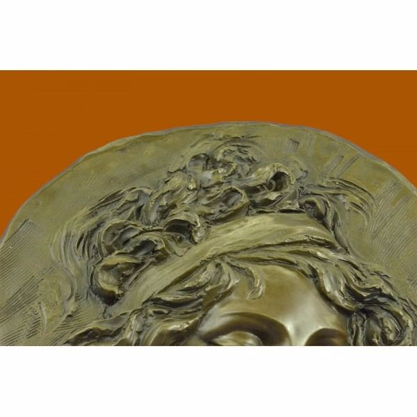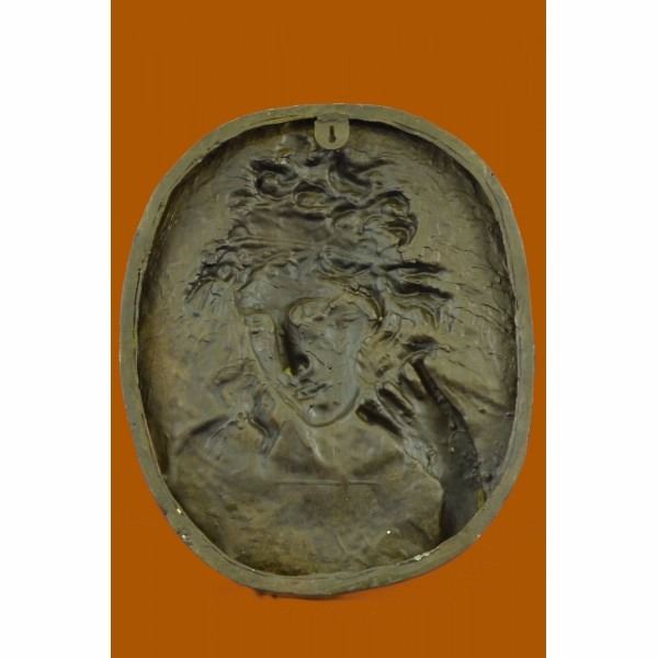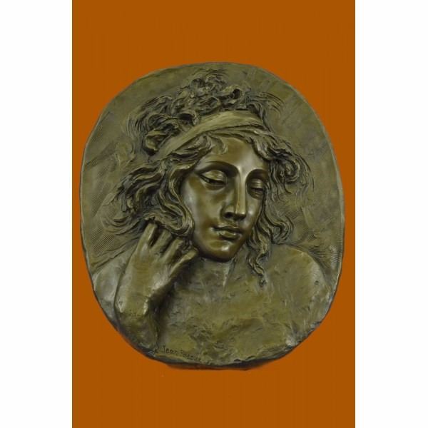 This beautiful wall piece depicts a the profile a young woman. Her expression is solemn. Her hair hare is styled in soft waves. This elegant piece will add class and style to any living room, dining room or parlor. The piece wax crafted using the lost wax method. It is signed by the artist Jean Patoue. Condition: This sculpture is in perfect condition. Bronze Dimensions :Height 18" x Width 15" Weight : 15 LBS Inventory 45YRD10419054
