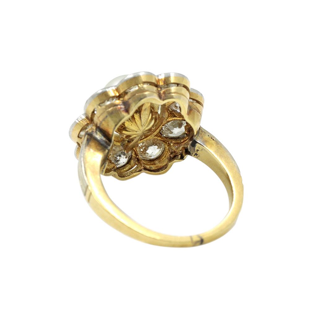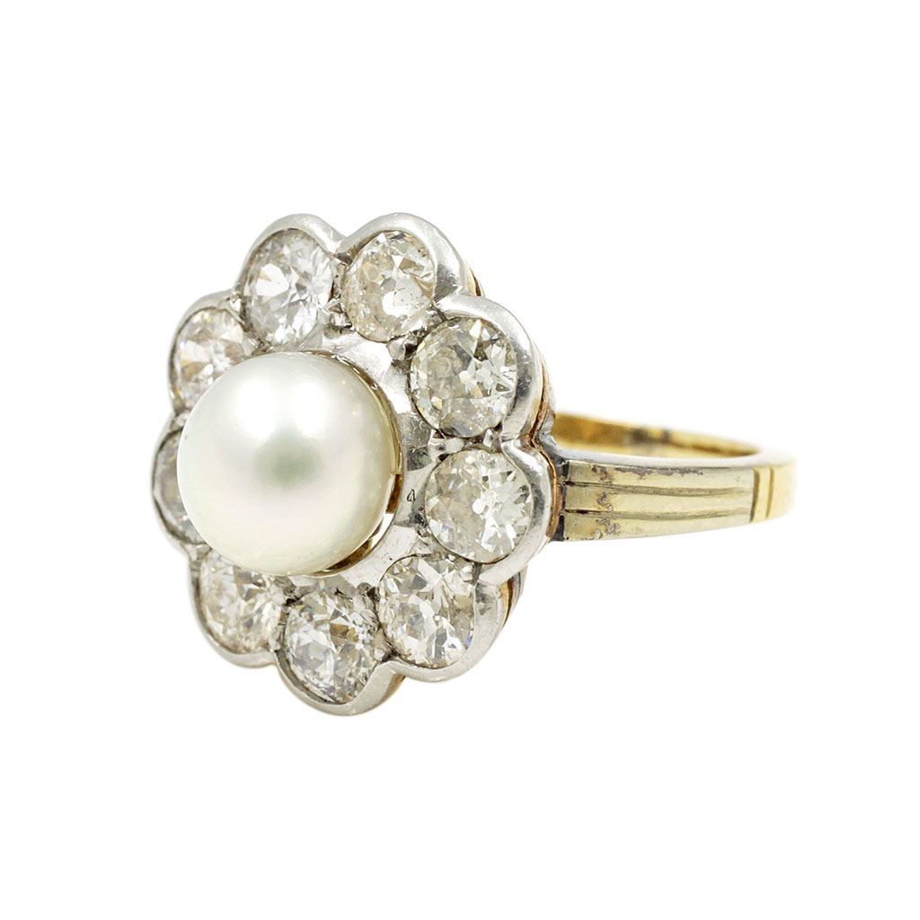 Art Deco Cultured Pearl Diamond Cluster Ring