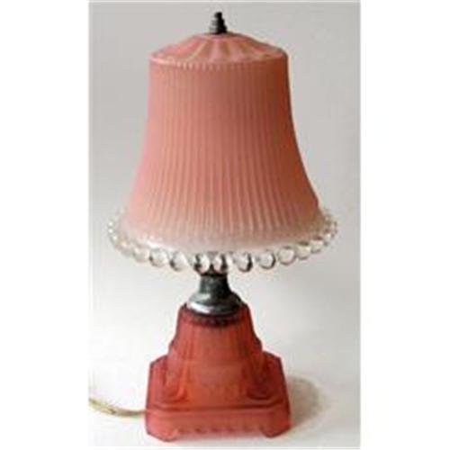 <tr><td>Title:Art Deco Pink Depression Glass Vanity Lamp</td></tr>