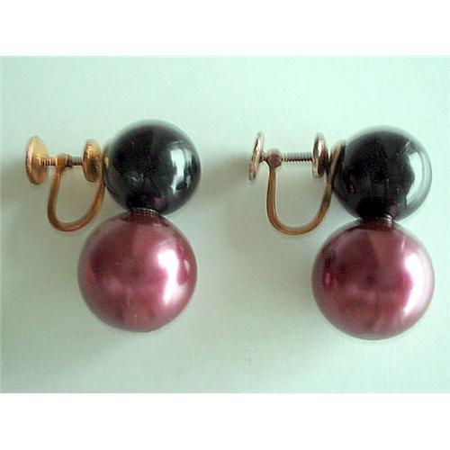 A very attractive pair of Art Deco Richelieu screw back earrings. Double beads, one on top of the other. Top bead is black, either Bakelite or plastic (I have not tested) and the bottom bead is a metallic purple color.