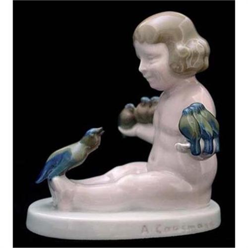 Art Deco period porcelain figurine of a young girl and birds. It is marked on the underside with the Rosenthal mark and text: "Kunst Ableitung Selb Bavaria" used in 1914. It is signed on the side of the base "A. Caasmann". In good used condition with professional restoration. Please ask questions, request additional photos and shipping costs before buying.