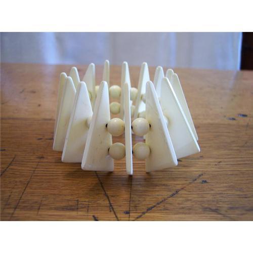 Great cream colored bracelet-stretchy.I do not know if this is bakelite or some kind of plastic.Great design and looks wonderful on.