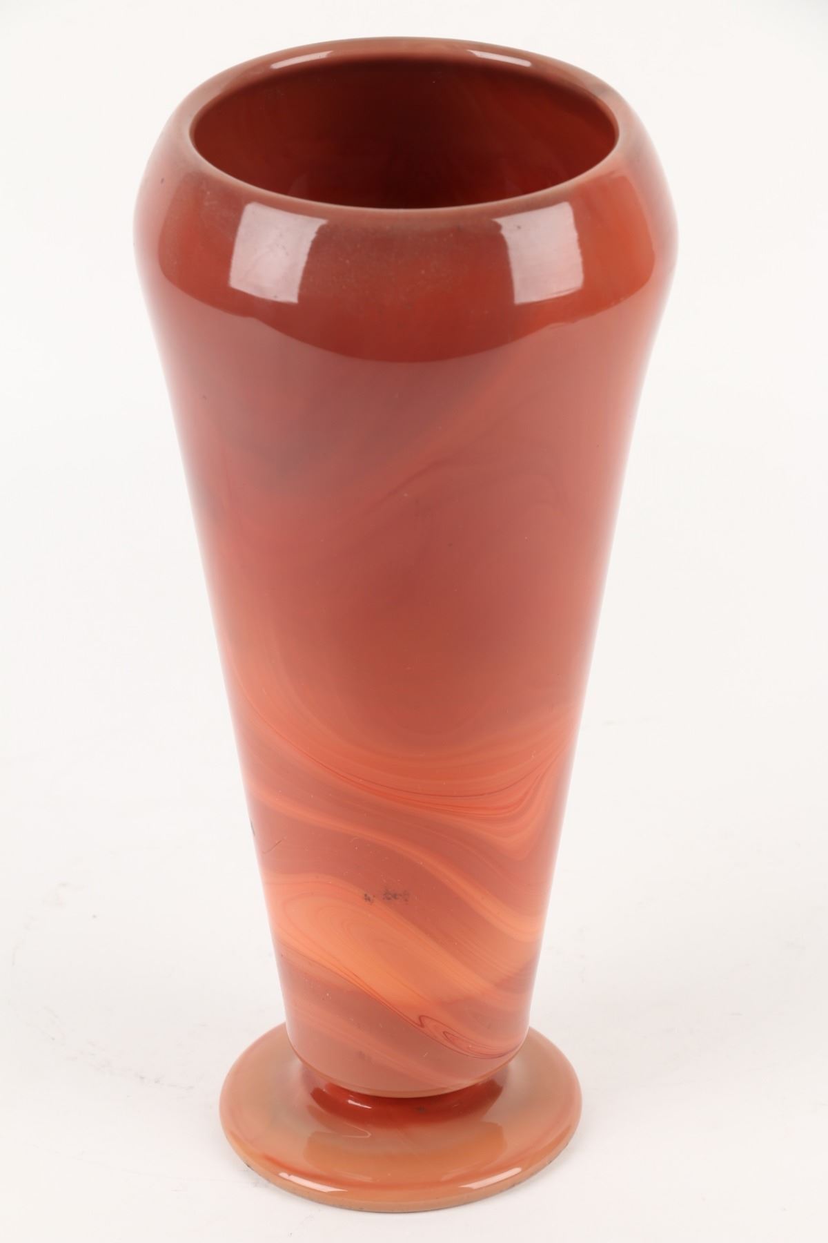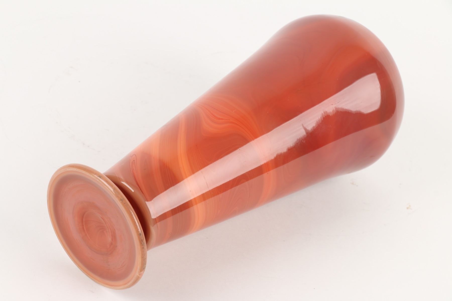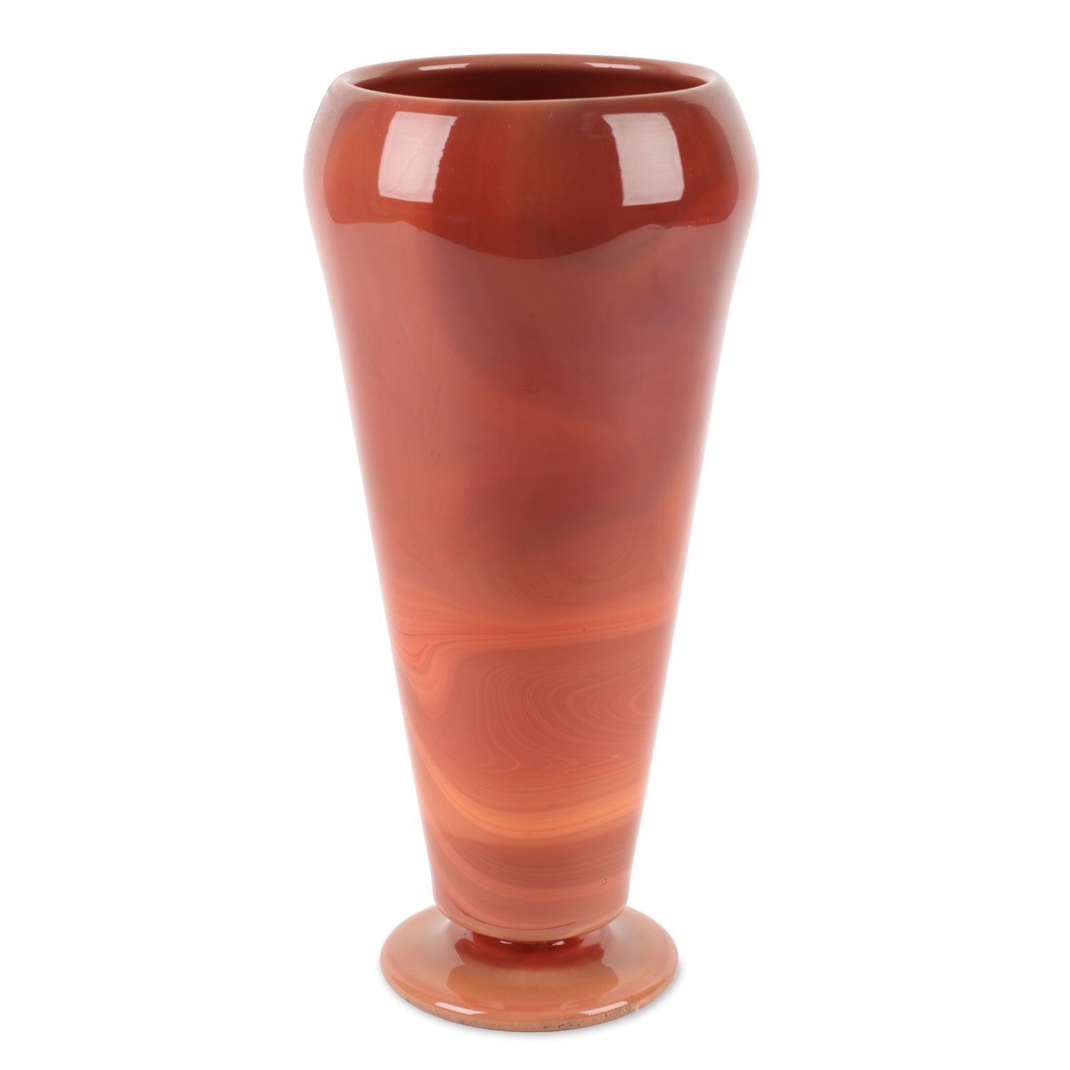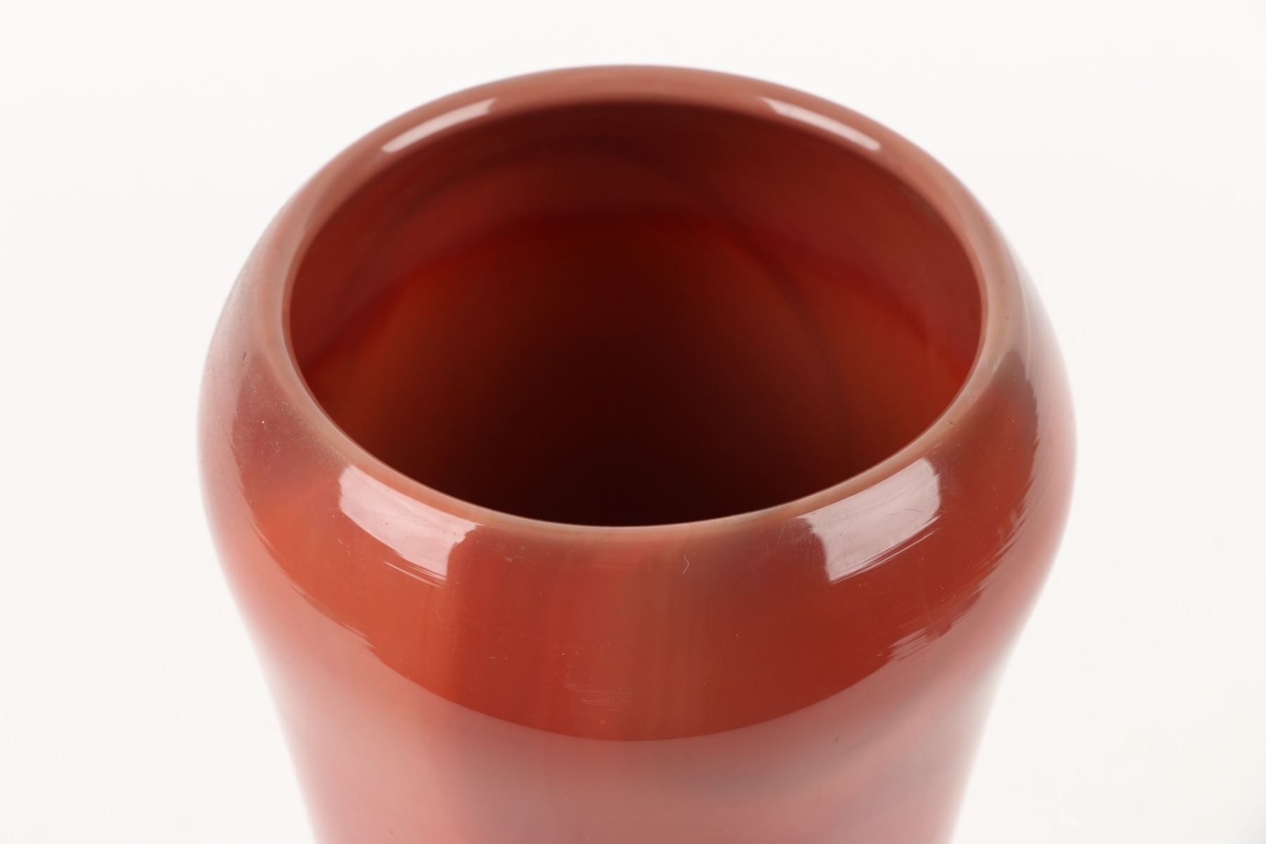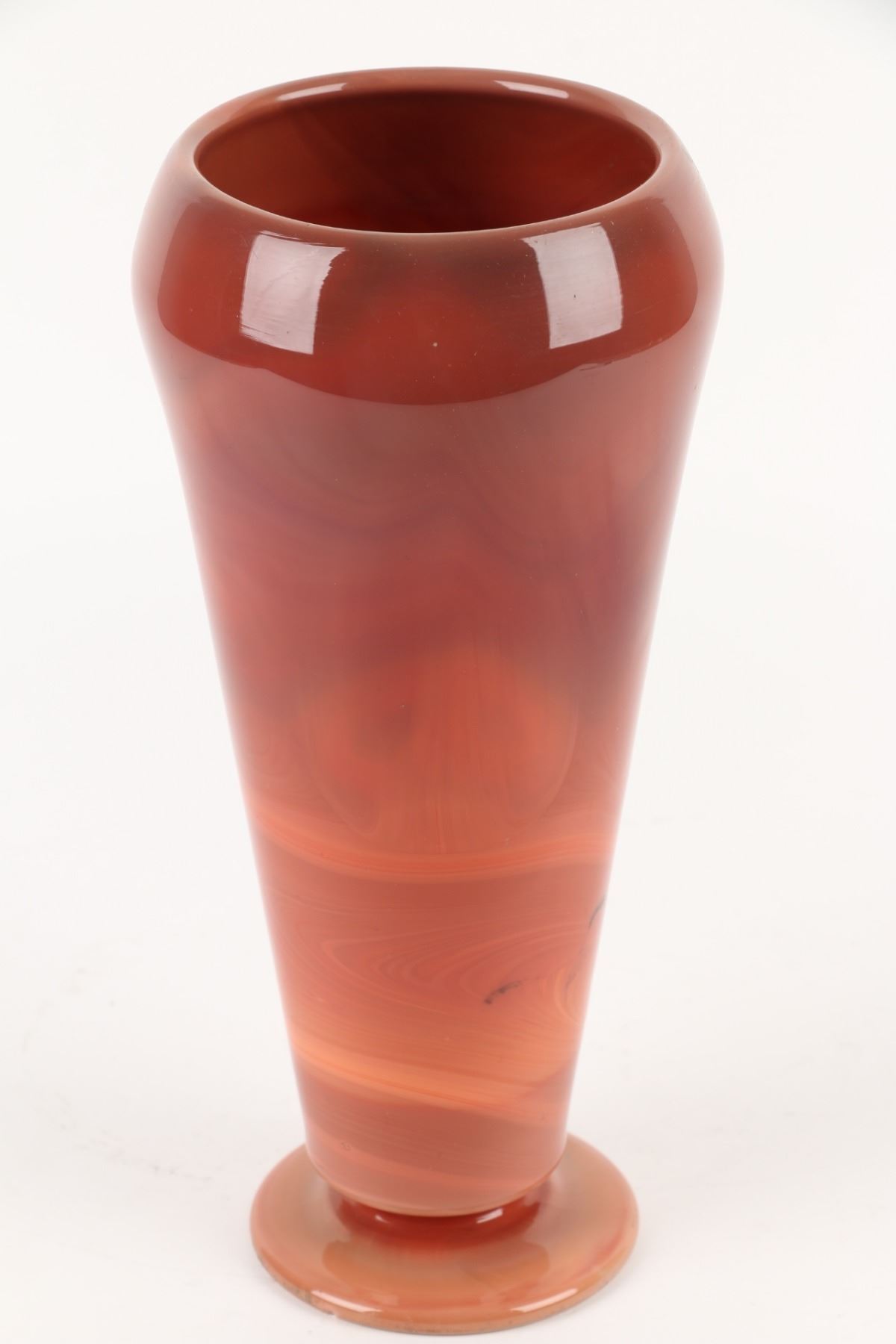 Lot 451 - Circa 1925. Red & Caramel slag glass. Unsigned. 11" x 5.25". $100-200.