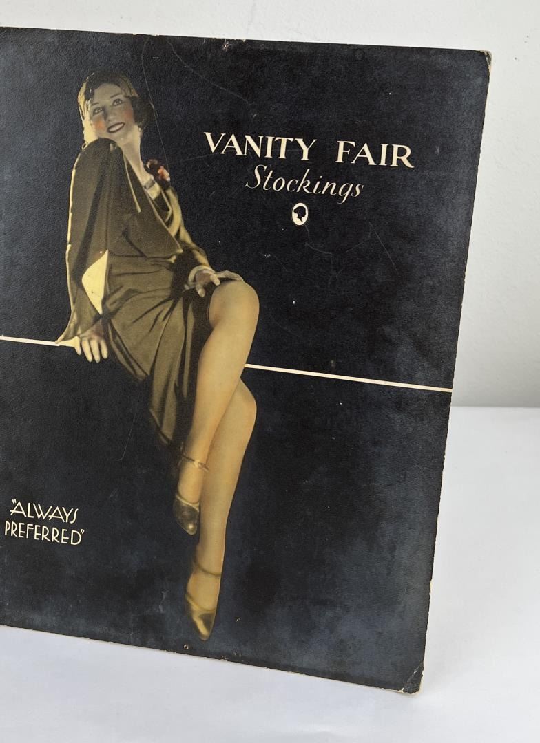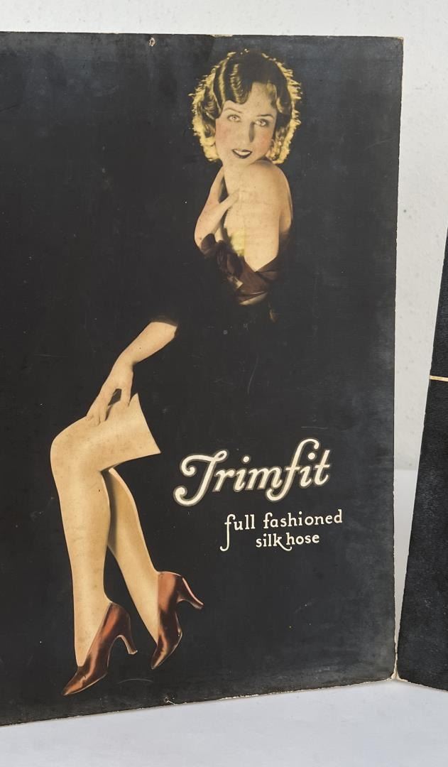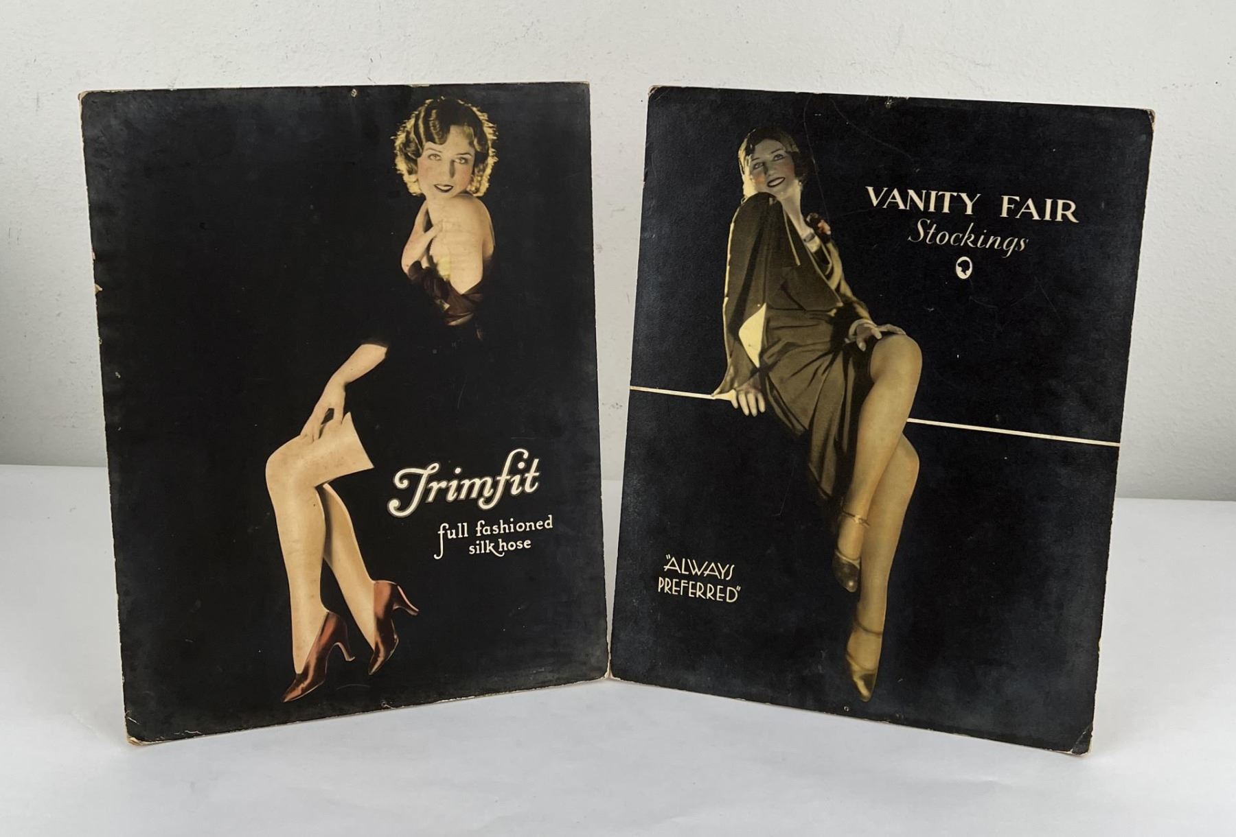 Wonderful old pair of signs. Real Photo. Vanity Fair Stockings, and Trimfit Silk Hose. Apeda Studio Photographers New York City. 13 1/4" tall.
