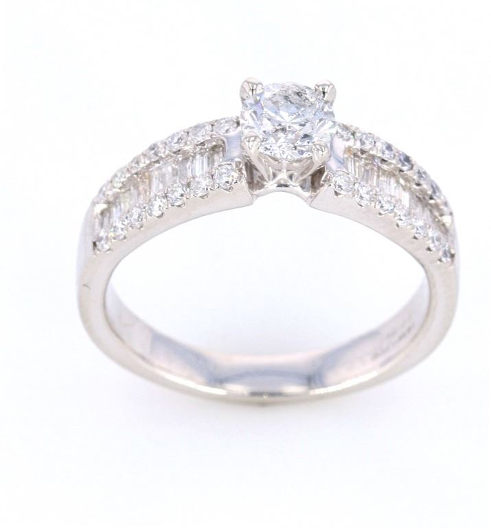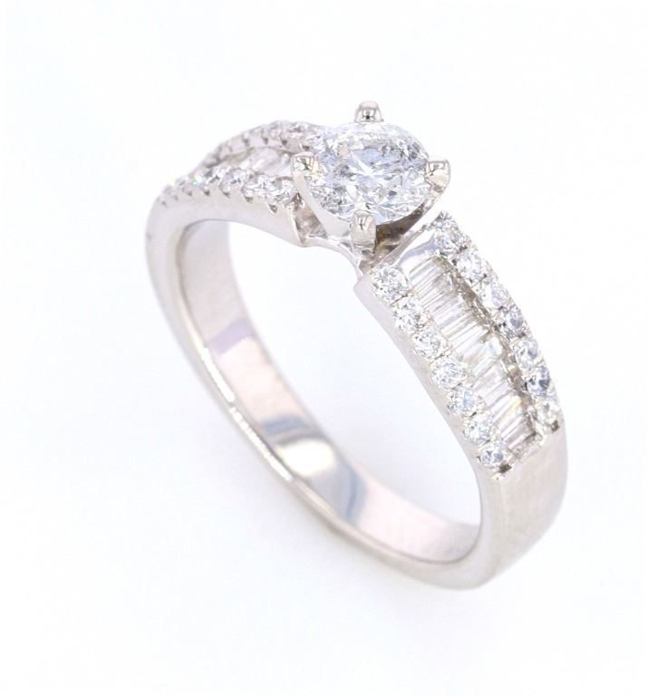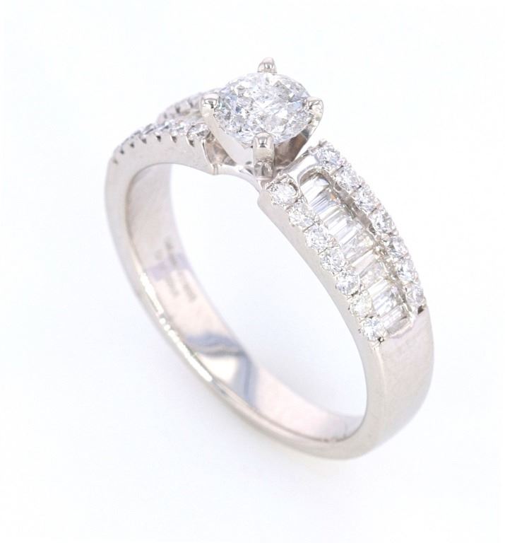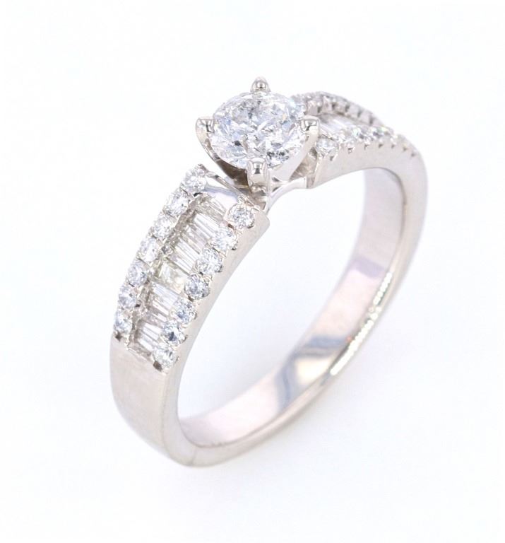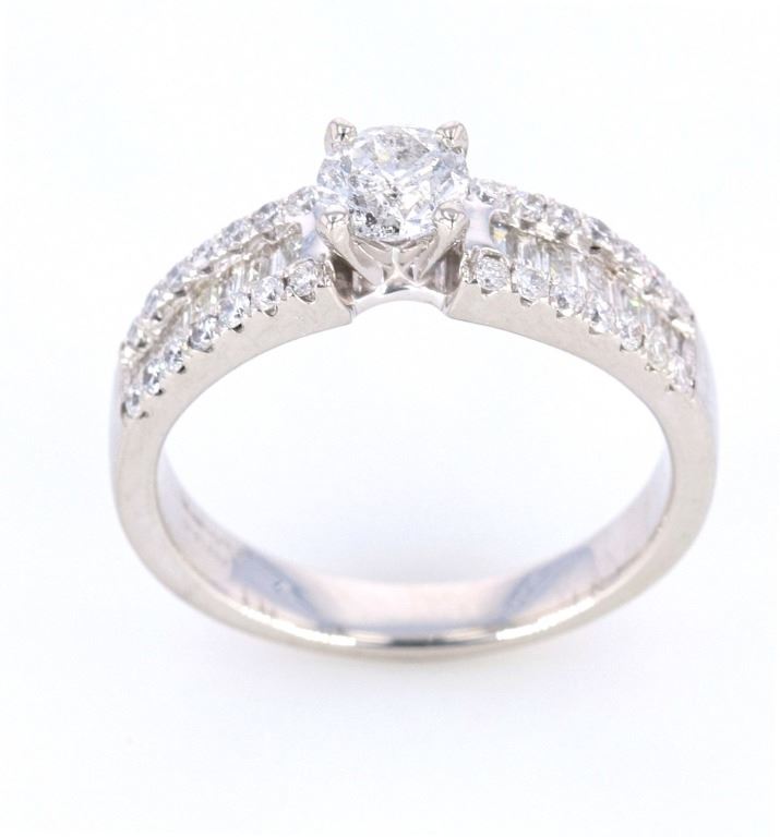 The lot features a fine 1.00 total carat natural diamond platinum ring showing a nice estate age. The ring shows a fantastic Art Deco 1920’s style having a gorgeous four prong solitaire center stone with shoulders set in round brilliant and channel set baguette cut stones. The center stones show a round brilliant cut with weight of 0.41 carats I1 clarity, G-H color. The ring is also set with 0.59 carats of diamonds in round brilliant and baguette cut stones with color of G to I1 clarity. The ring is stamped Orianne PT950. The ring comes with a gemology report and appraisal from IAS (Independent Appraisals Services, IAS#: 10020EW2) confirming the above information and giving a value of $6,800.00. The ring is in fine condition and is in a size 7 US.