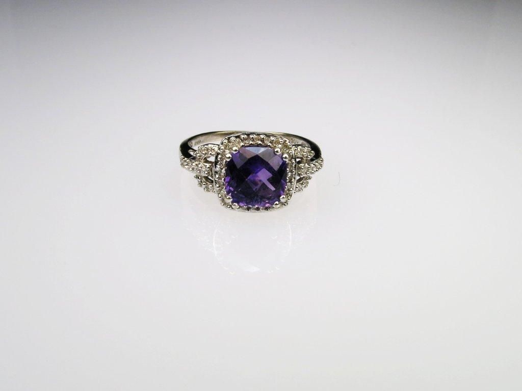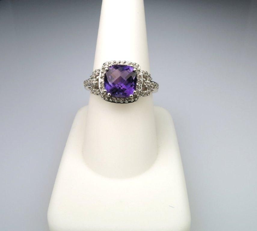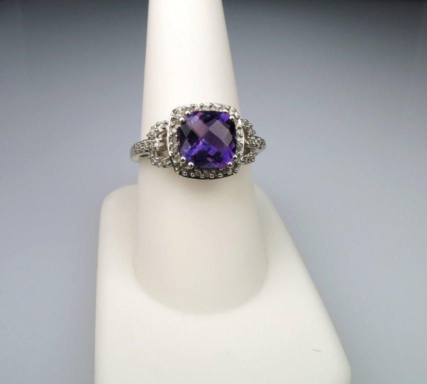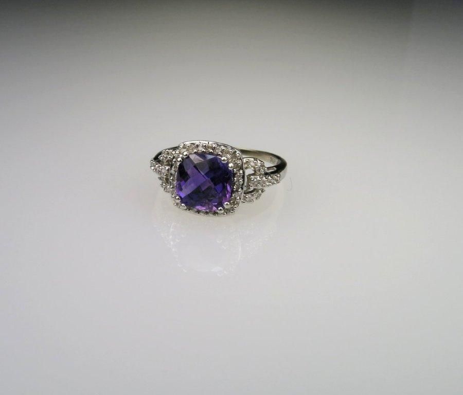 Approx. 3.00 carat checkerboard cut amethyst accented with 40 round cut diamonds set in 10 karat white gold.