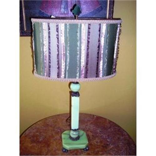 This is beautiful onyx base art deco lamp with brass claw feet and the shade which would complement the base and color of it.