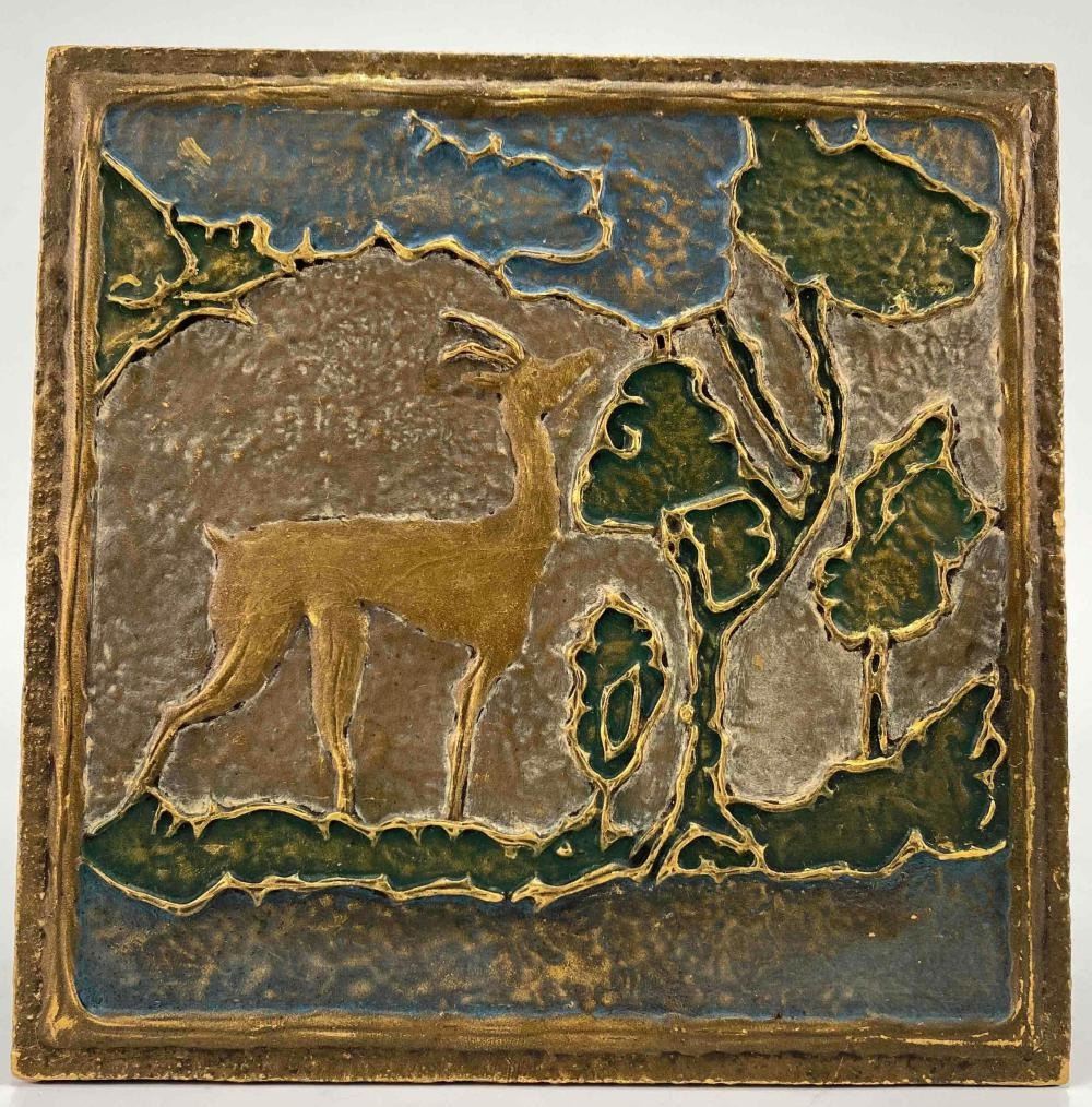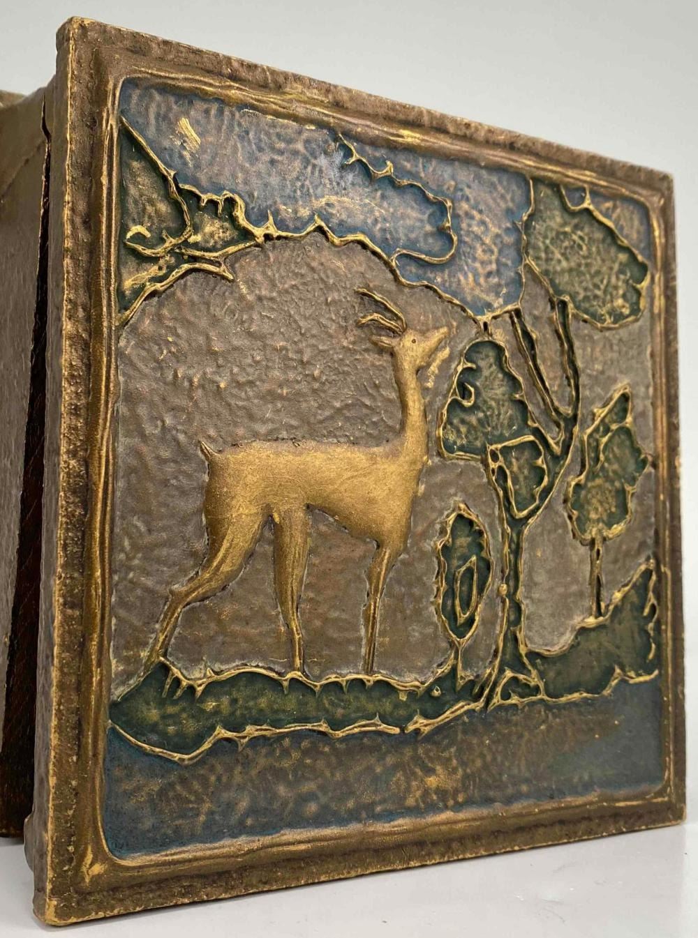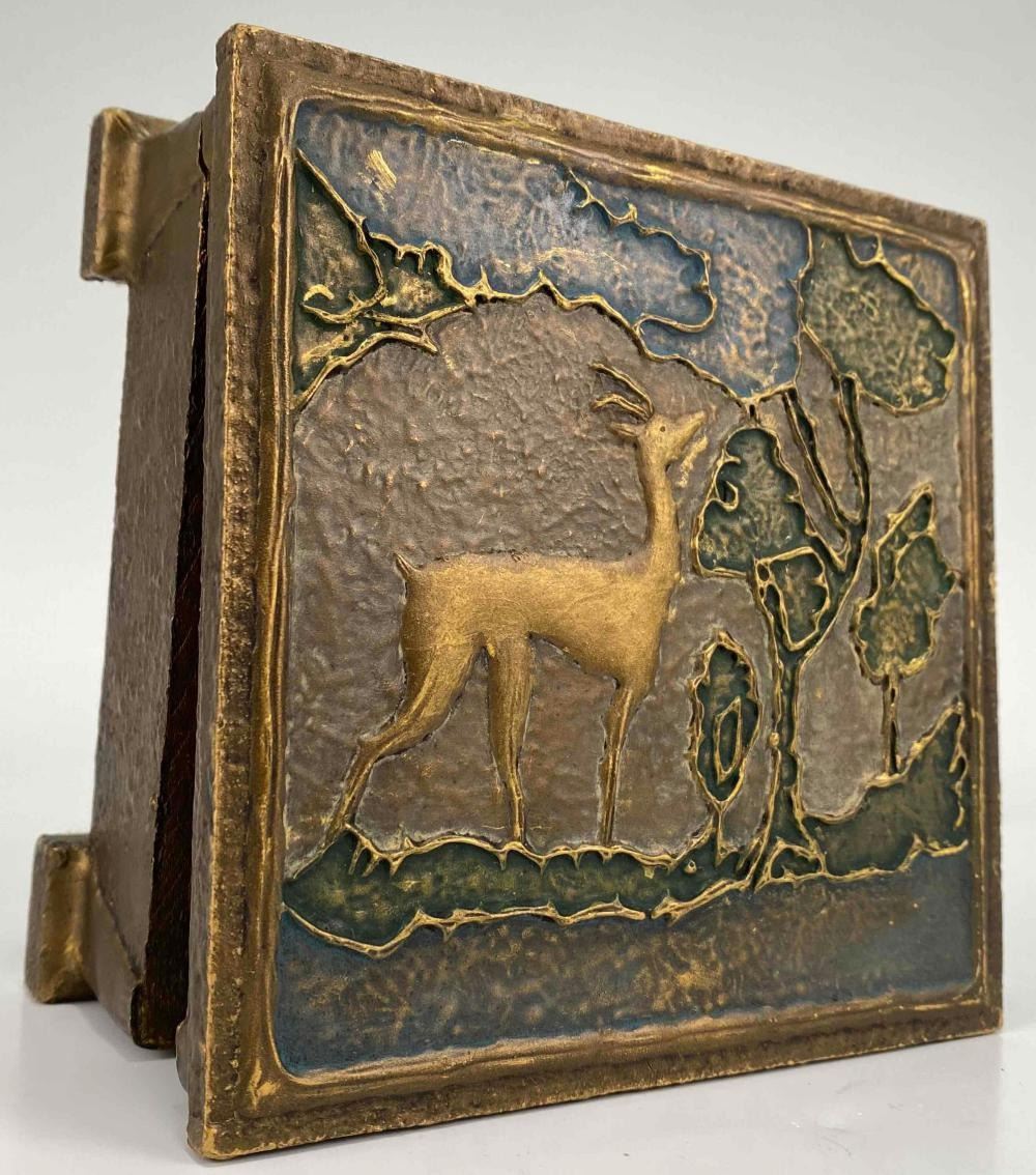 Art Deco Hand Painted Gilt Box With Deer Motif. Unmarked. Approximately 5.375W x 2.375H in.