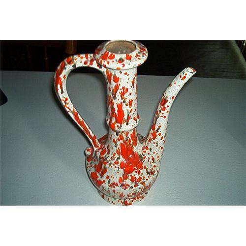 Made of ceremic and brightly painted, colored orange, green and white. Unusal design. Bottom dated: 1974. Stands 13 1/2 inches;base measures: 4 1/2 inches in diameter. vase opening measures: 1 3/4 inches in diameter. Highly Glazed.
