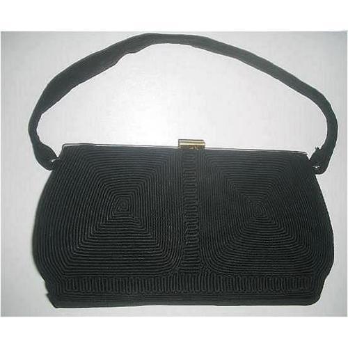 <tr><td>Title:Art Deco / WW11 Black Corde Kelly Style Handbag</td></tr>