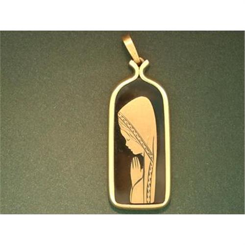 Art Deco design at its best. Silhouette of a praying young woman has all the elements of Art Deco. The silhouette and pendant are 18k yellow gold.